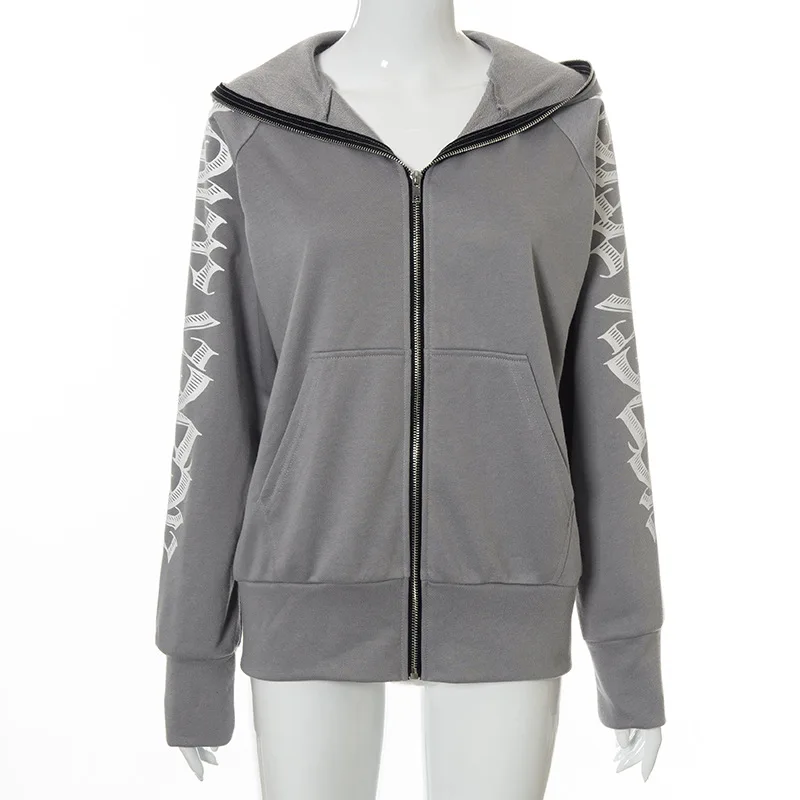 Худи на молнии, уличная одежда с буквенным принтом, Женские куртки ...