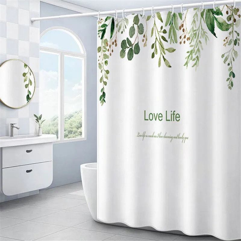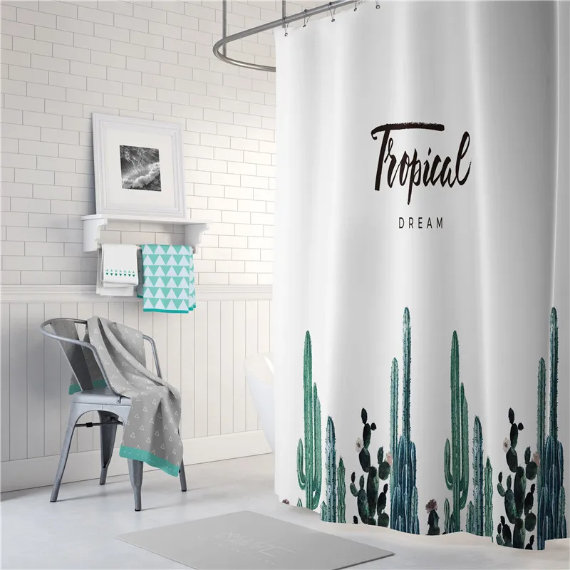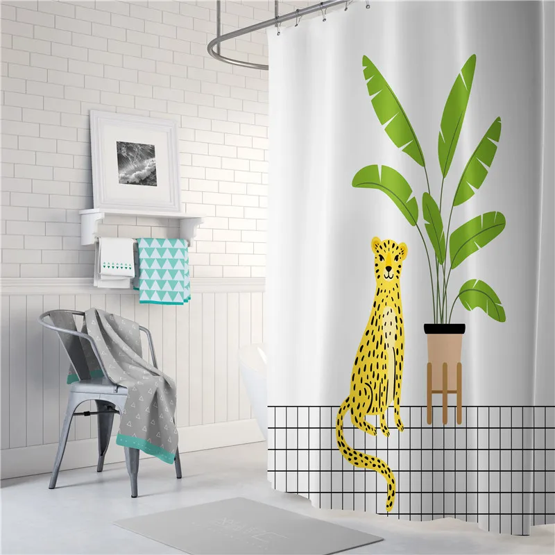 Водонепроницаемая занавеска для душа в скандинавском стиле, с изображением фламинго, оленя, тропических зеленых листьев, из полиэстера, длинная занавеска для ванной, домашний декор