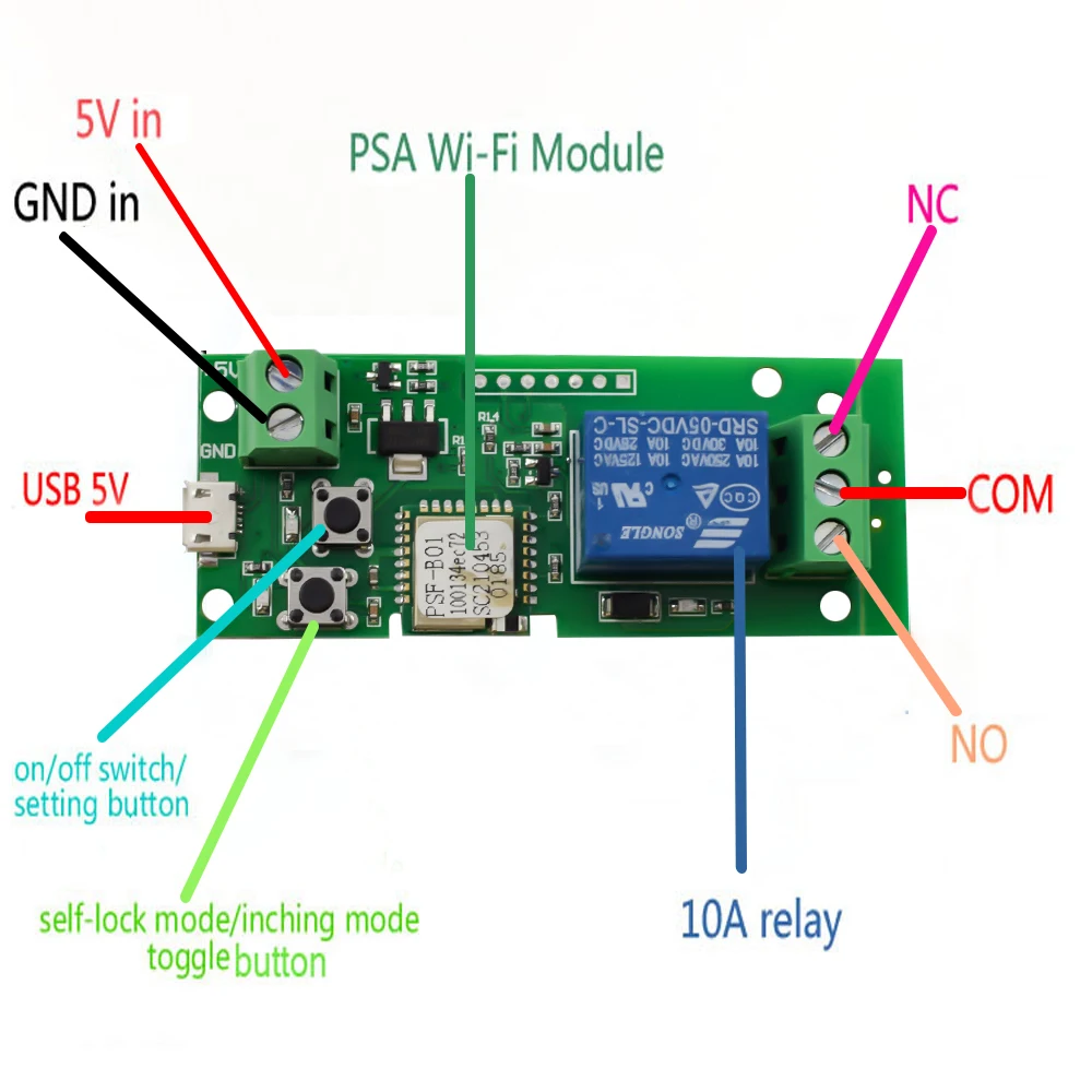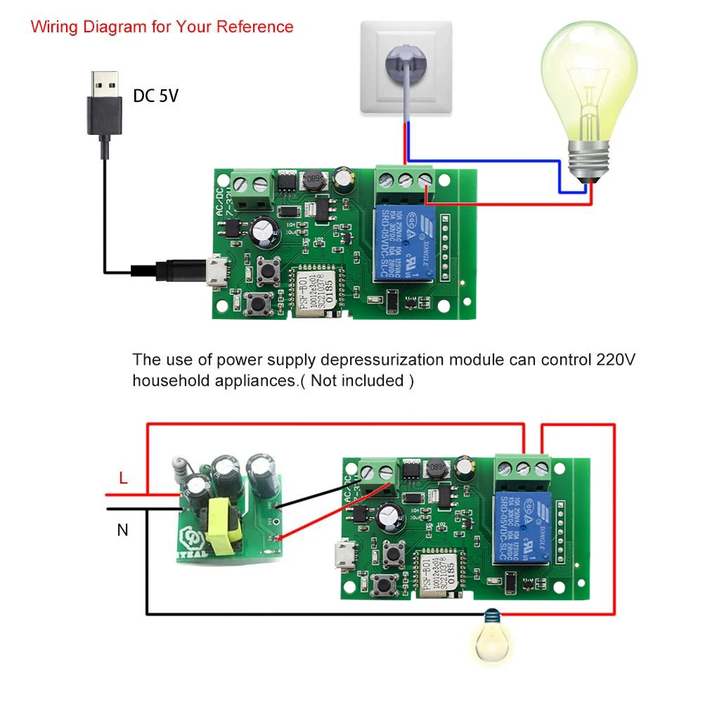 Вариант 1.ewelink app DC7-32V USB5VВариант 2.Ewelink app 5V USB5V (в посылка вке есть подробные инструкции) С инструкцией по включению сигнала и инструкцией по включению релеМощность <1 Вт и Ток покоя: 80 мАТок отключения <10 А, напряжение отключения <250Релейный режим 10 АСрок службы модели реле более 1000, 00Сопротивление изоляции: 100Максимальное время включения: 15 мМаксимальное время выпуска: 5 мРабочая температура: от-40 до 70 градусовРабочая влажность: от 40% до 80% относительной влажностиФункция подключения по умолчанию: нажмите на открытое реле на мобильный телефон, затем автоматически отключите тягу (по умолчанию одна секунда), оно имеет функцию синхронизации одновременно.Самоблокирующийся при нажатии кнопки отключения и блокировки при включенном светильник. Нажмите «открыть реле», чтобы натянуть, нажмите «закрыть реле», чтобы отключить.