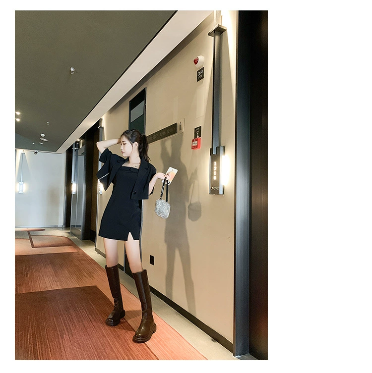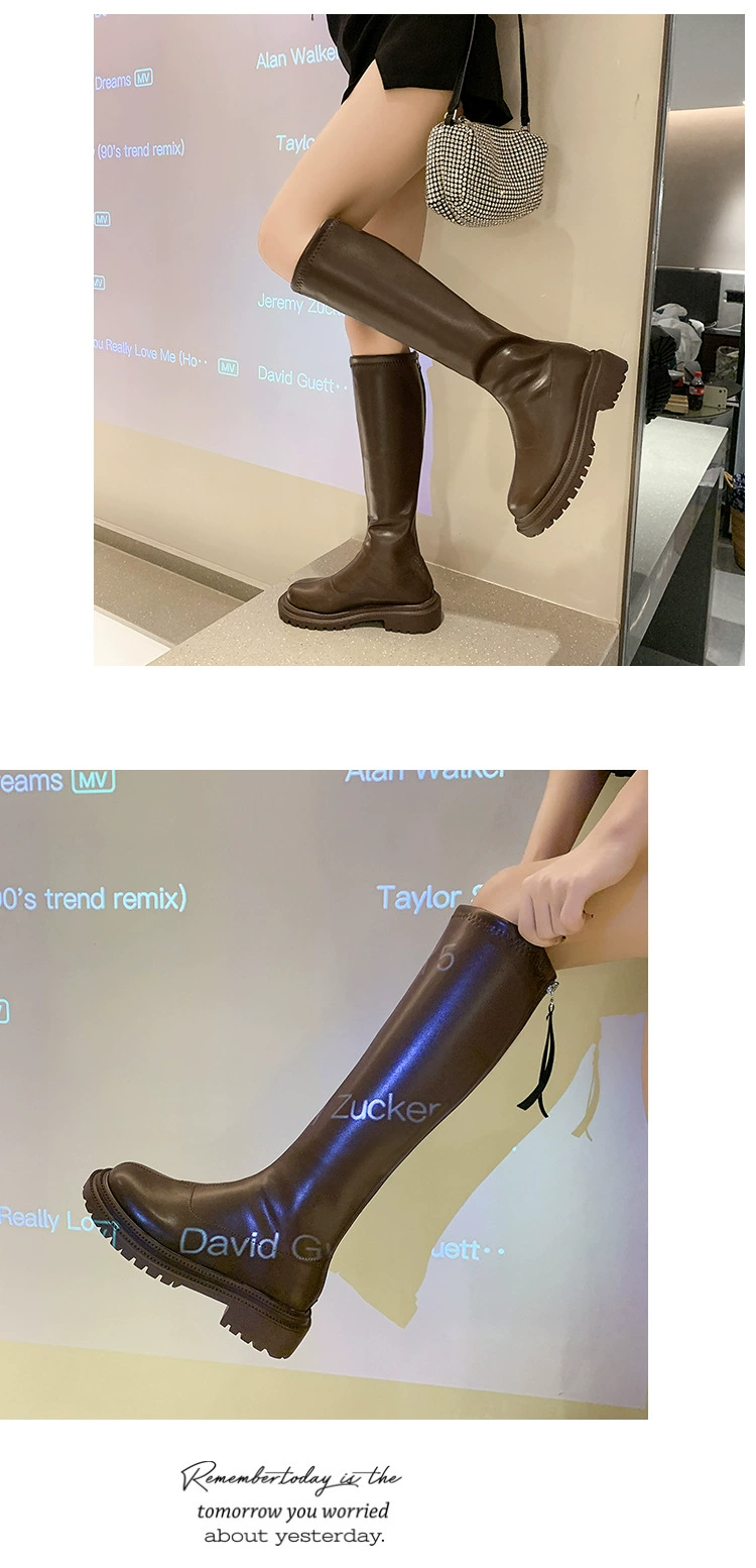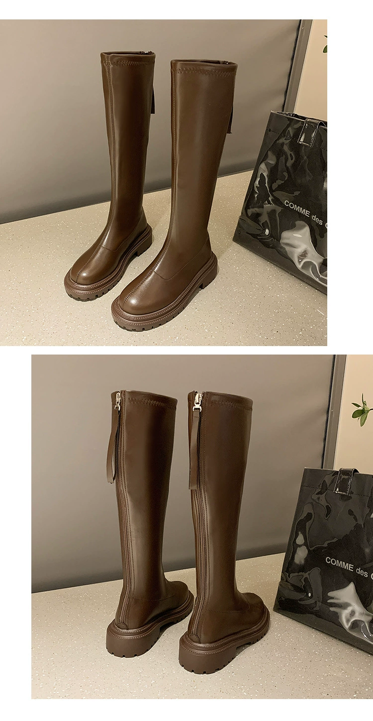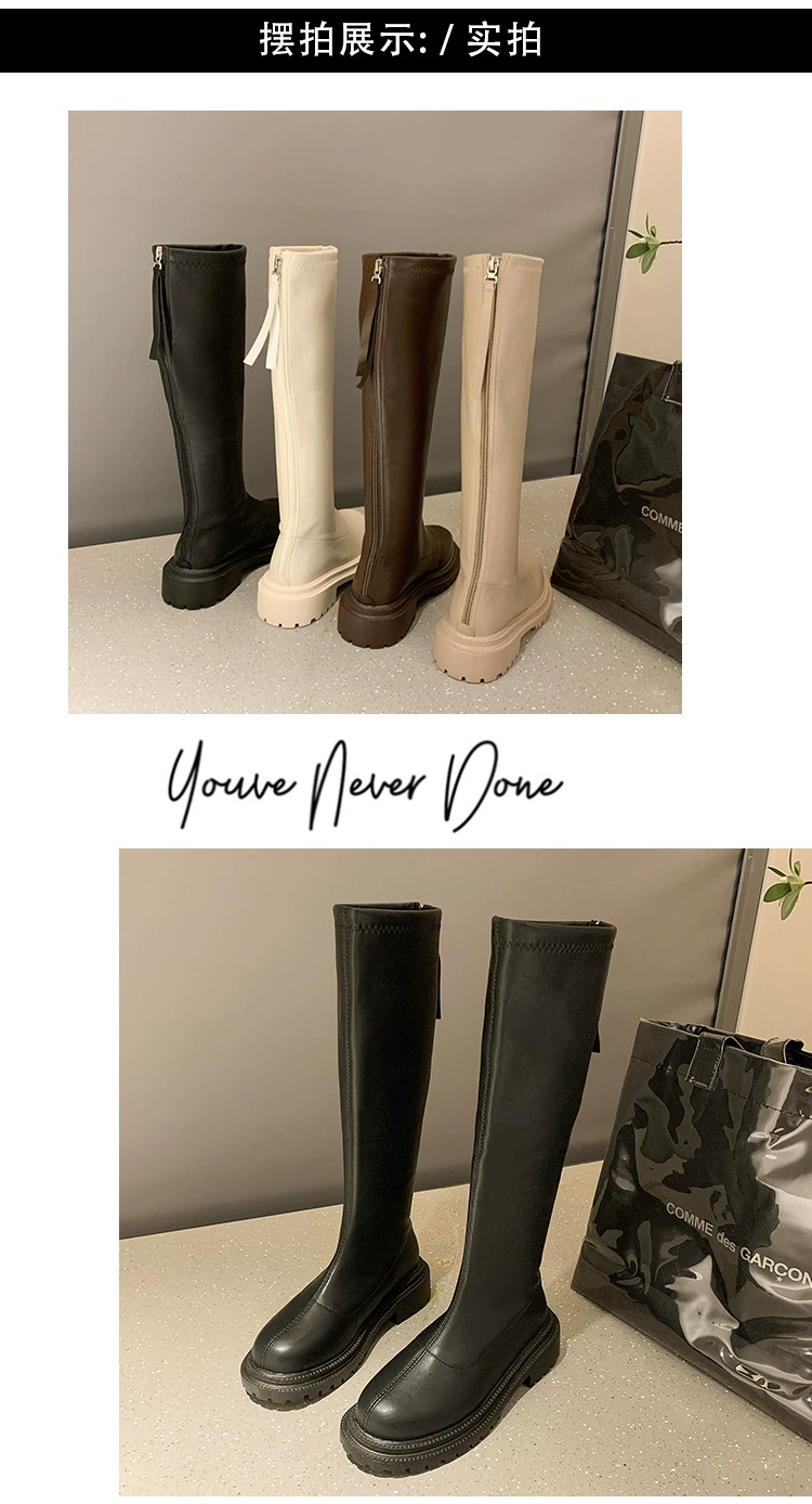 Женские высокие сапоги на молнии сзади, черные плюшевые сапоги до к...