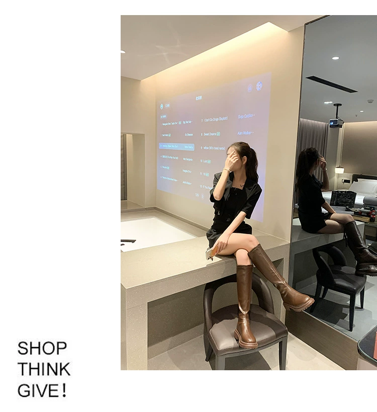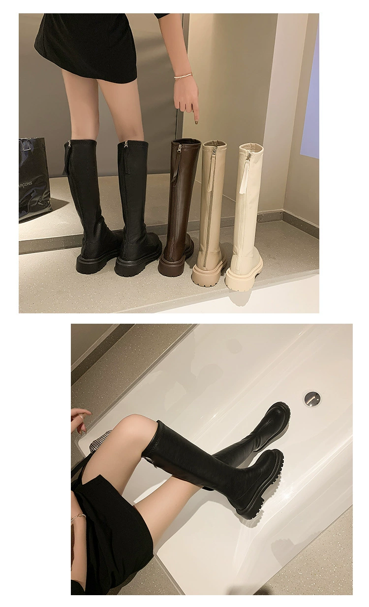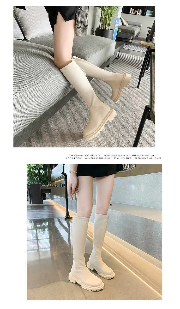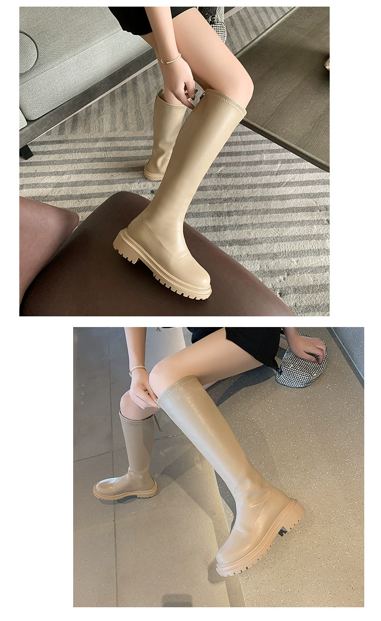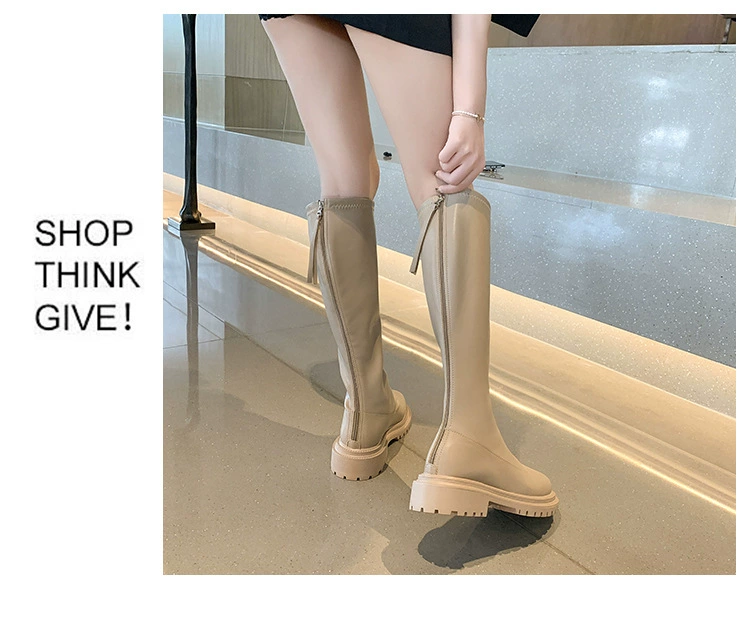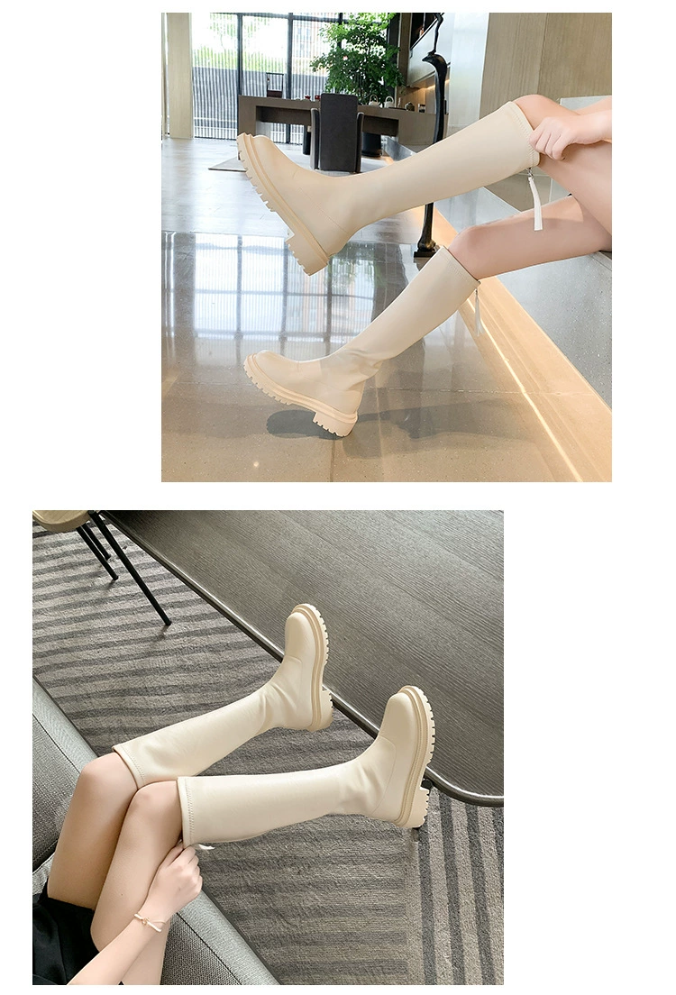 Повседневные женские сапоги до бедра на низком каблуке; Цвет бежевы...