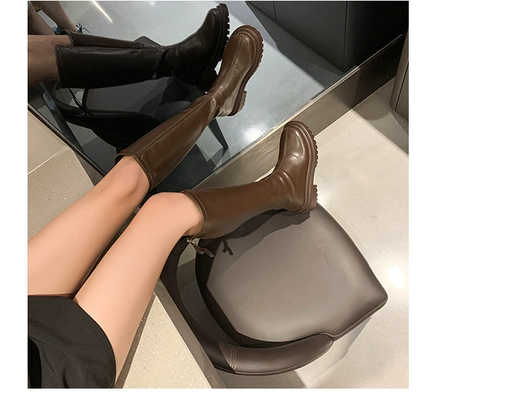 Сапоги до бедра на плоской подошве, женские облегающие сапоги до колена на платформе и толстой подошве, женская обувь, черные зимние длинные мотоциклетные сапоги для женщин