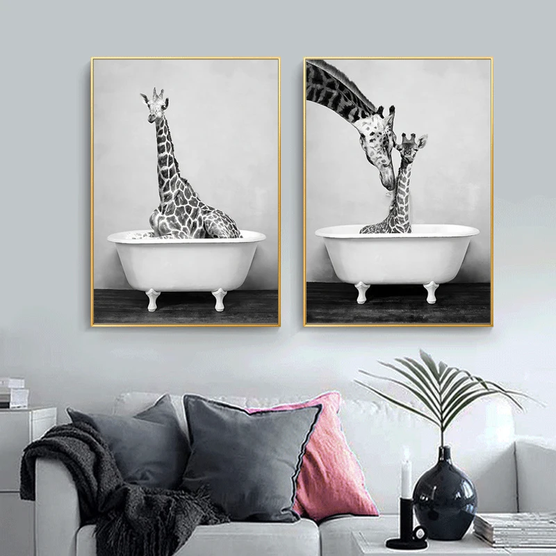 Детские животные слон лев панда Жираф в ванной картина настенный художественный Декор холст картины плакаты и принты для декора комнаты