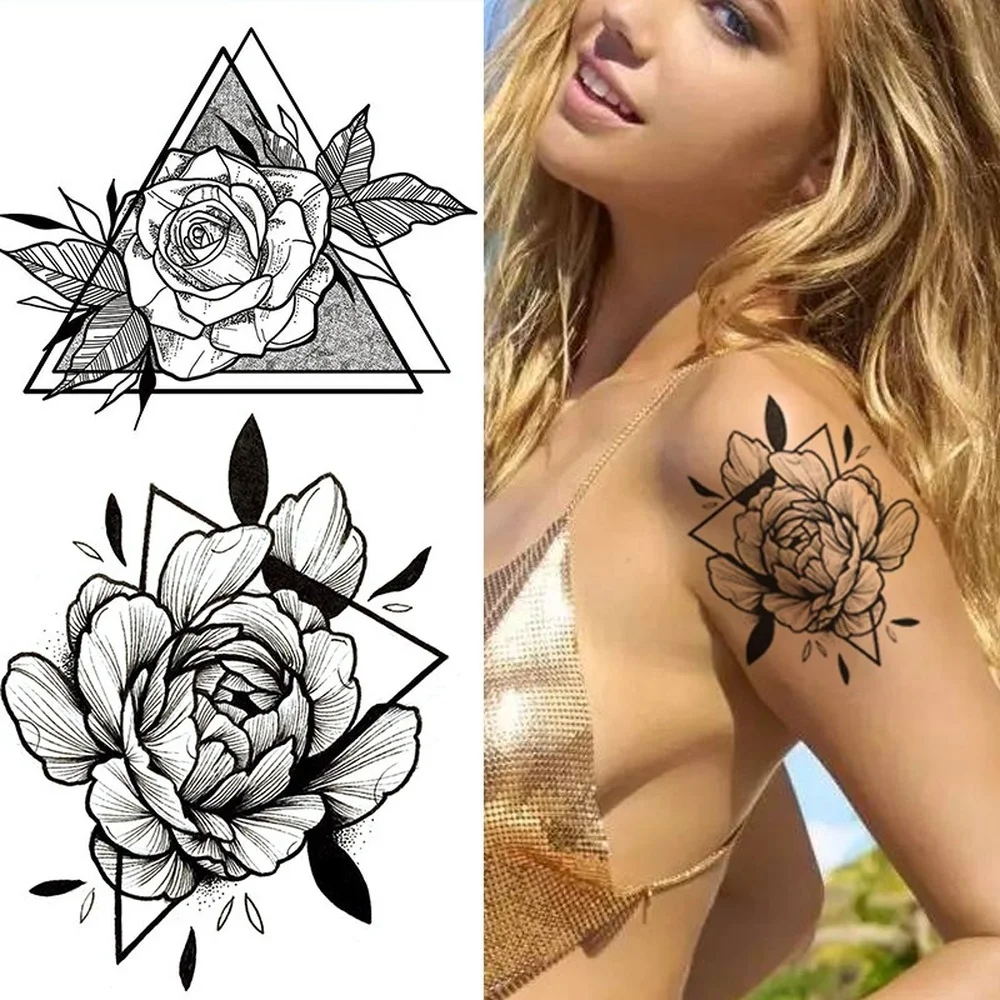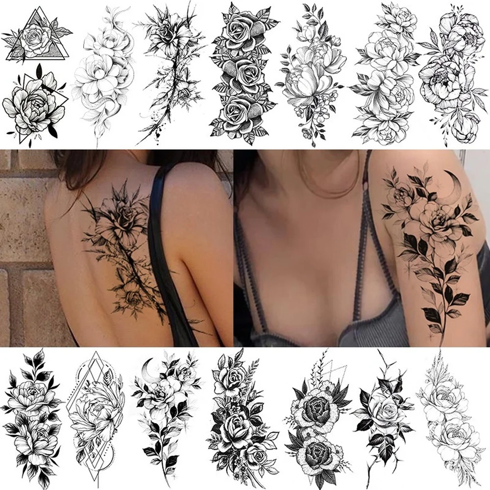 Водостойкие Временные татуировки черные эскизы цветы татуировки наклейки 3D черные флэш поддельные татуировки для женский боди-арт дешевые вещи