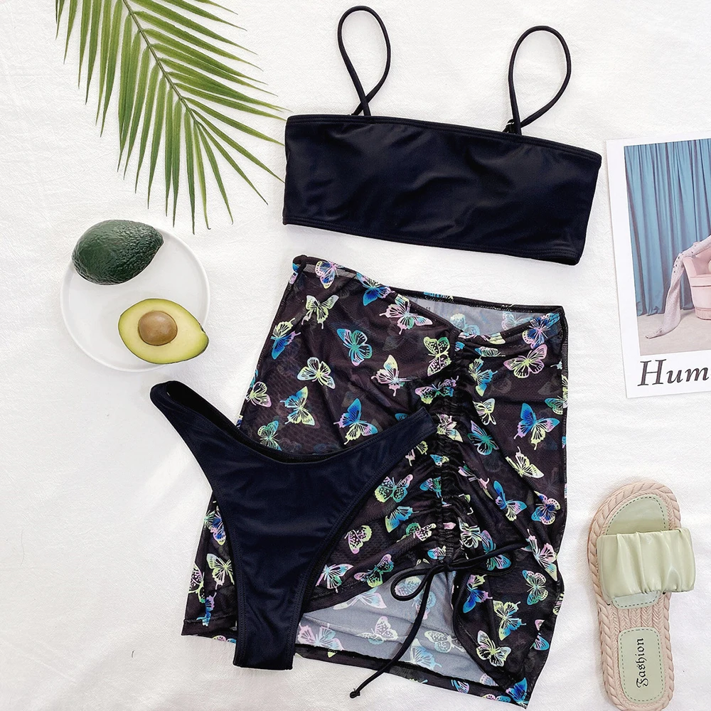 2021 новый сексуальный комплект бикини с высокой талией, пляжная юбка, купальник, женский купальник, женский купальник из трех частей, бикини, купальные костюмы, пляжная одежда