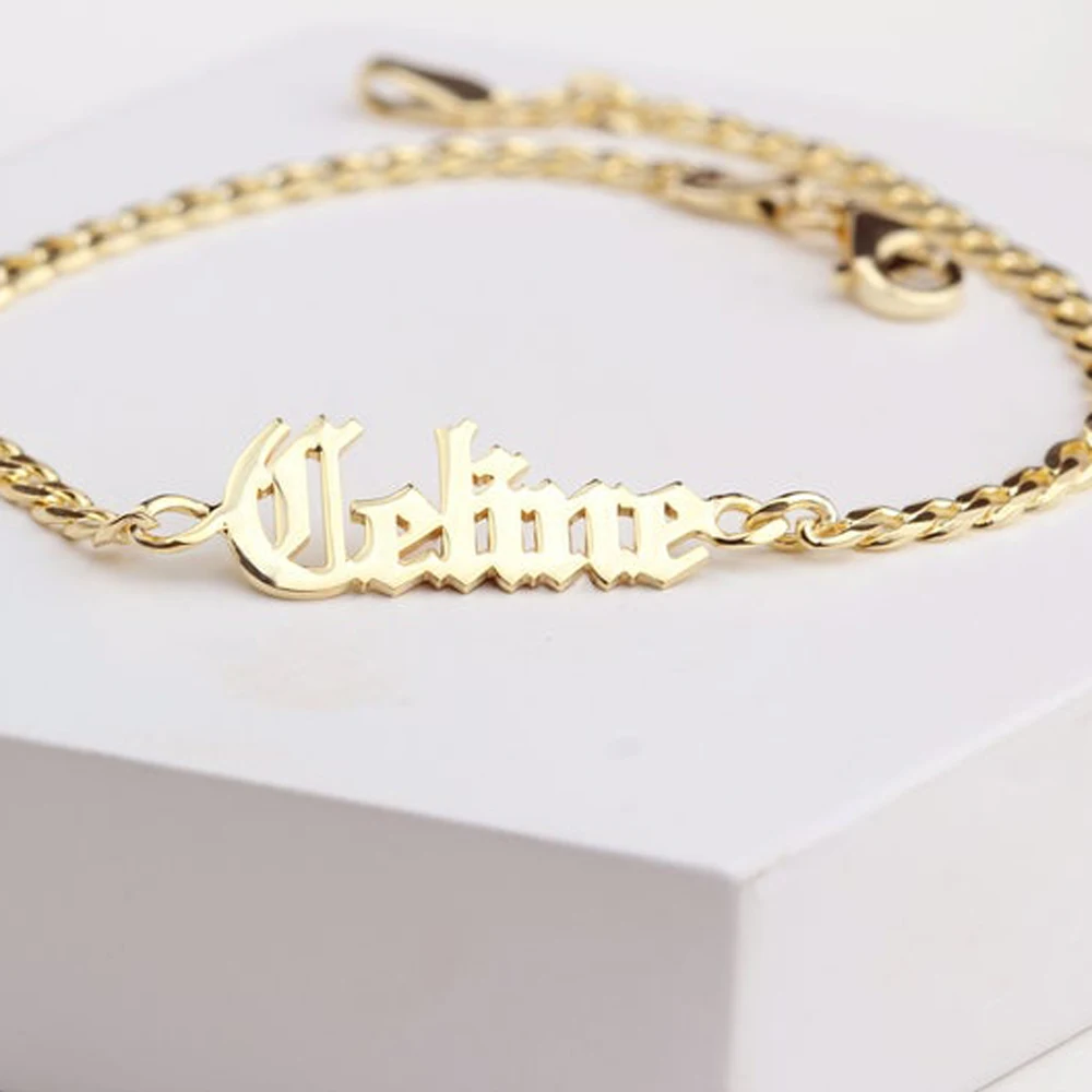 Именной браслет на заказ, золотая цепочка из нержавеющей стали на з...