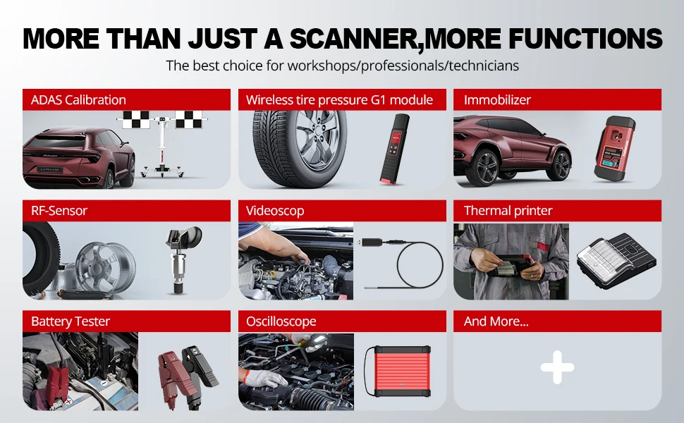10. Сотрудничество с G1 (опционально) для завершения работы с системой TPMS functionFull DiagnosticTHINKTOOL PD8 предлагает полную диагностику, такую как полное сканирование транспортного средства, считывание и очистка кодов неисправностей, прямой поток данных, испытание на приведение в действие, двунаправленный контроль, специальные функции, 28 различных функций сброса обслуживания и многое другое.