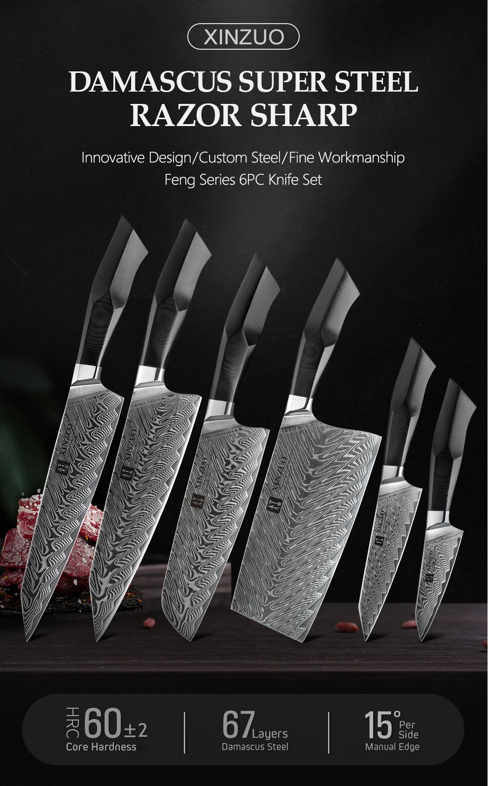 XINZUO Feng Серия 6 шт Дамасская сталь набор ножей