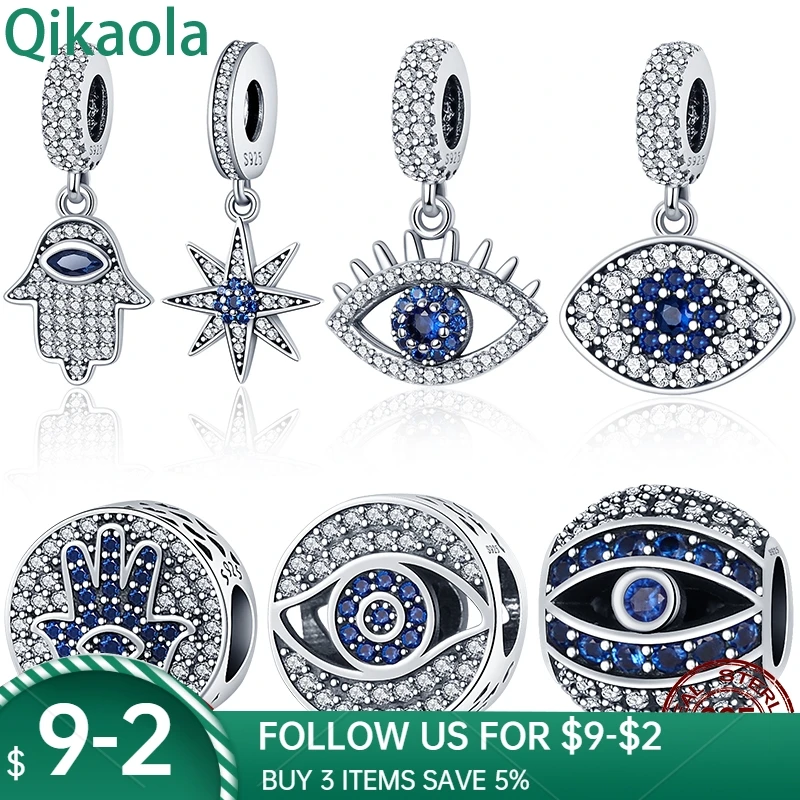 Женский браслет из серебра 925 пробы, с подвеской волшебные глаза