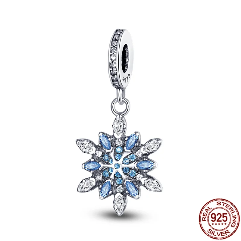 Лидер продаж, бусины-шармы из серебра 925 пробы с голубым Цирконом ...