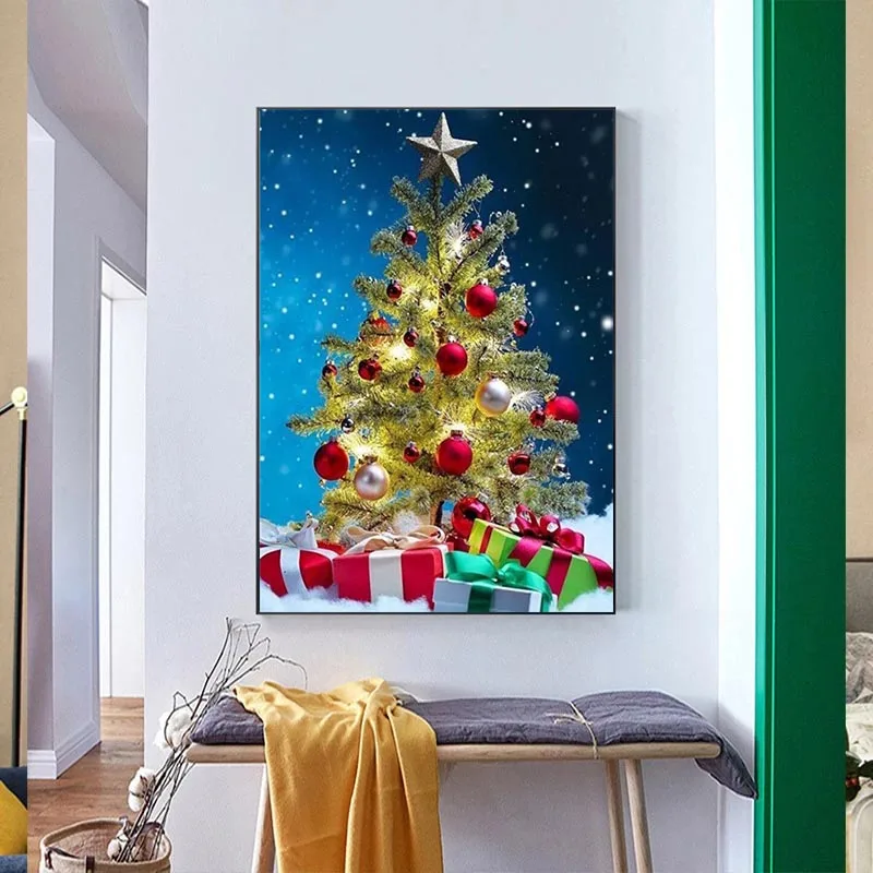 Новогоднее украшение, Картина на холсте "подарок на рождественскую елку", украшение на елку, картина, Современное украшение для гостиной, дома
