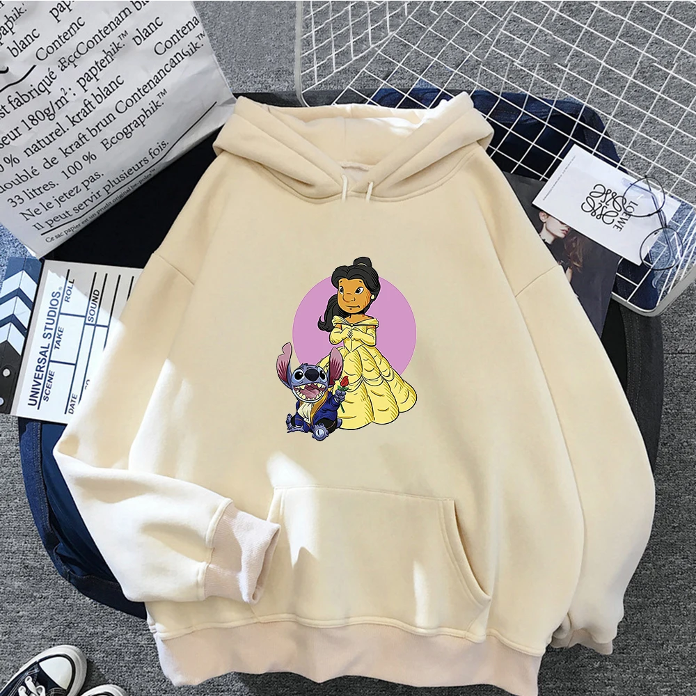 Женские толстовки с капюшоном Lilo Stitch, модный мультяшный пуловер с капюшоном, кавайная Осенняя повседневная одежда унисекс в стиле Харадзюку, бархатная одежда
