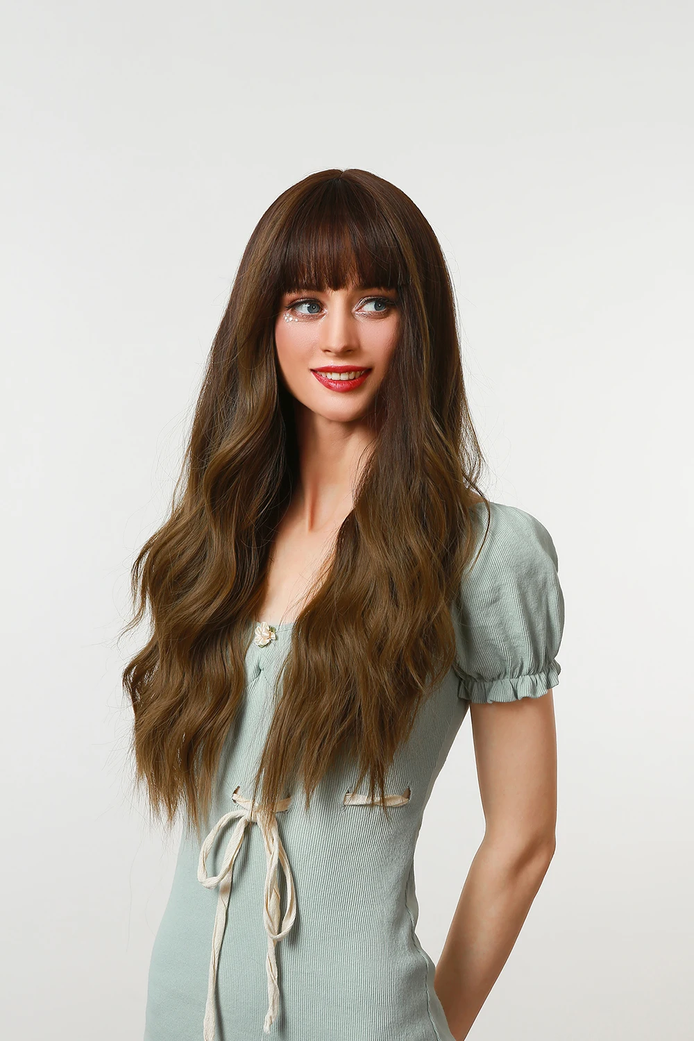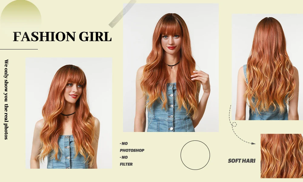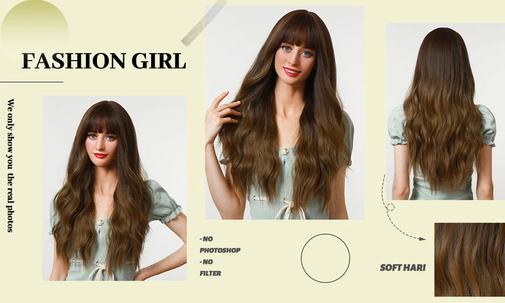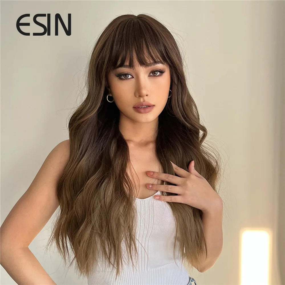 ESIN синтетические волосы Омбре коричневые длинные волнистые парики с челкой для женщин натуральвечерние праздничные термостойкие