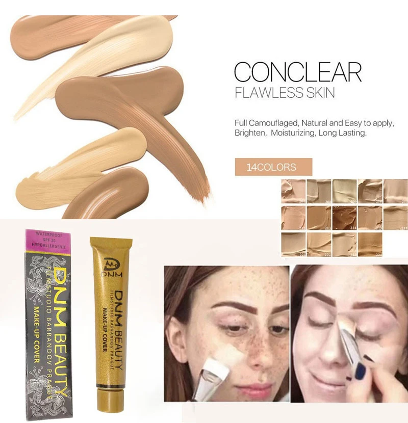 -Вес нетто: 30 г-Цвет: 14 цветов-Функция: покрытие лицевых дефектов, татуировок, акне, шрамов и т. д./Увлажнение/полная Маскировка/естественная/яркая/долговечная/легко наносится