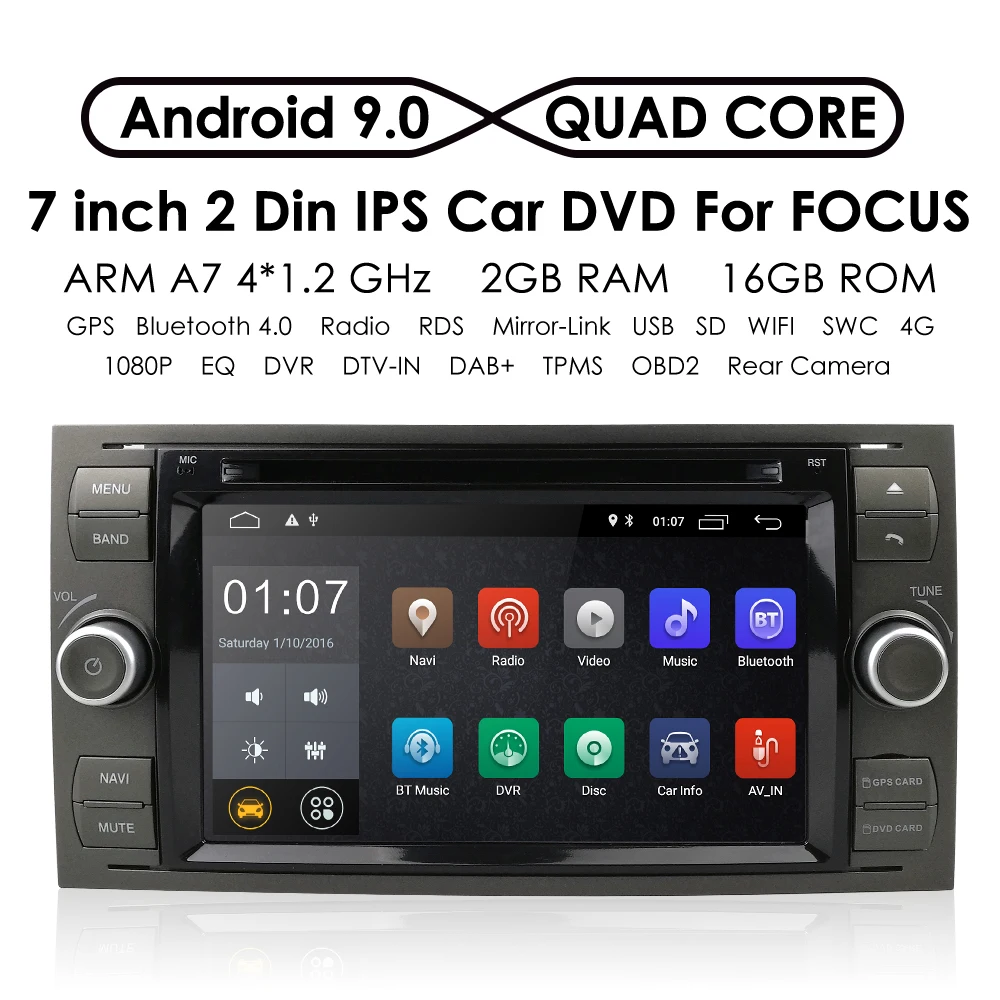 Автомагнитола 2 DIN на Android 9,0, мультимедийный проигрыватель для Ford Focus Mondeo Fiesta Galaxy Kuga Transit AutoStereo Wifi 4G BT SWC DVD