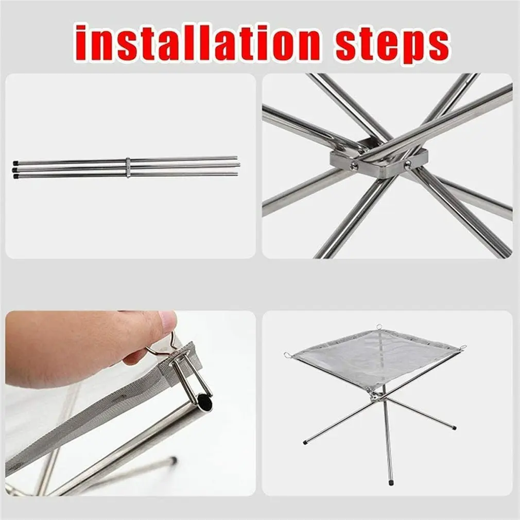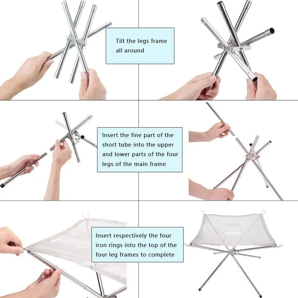 Костра для кемпинга, подставка для дровяной плиты, подставка для огня из нержавеющей стали, складная сетчатая подставка для огня, уличный деревянный обогреватель, подогрев