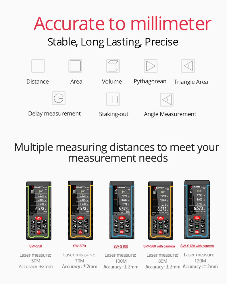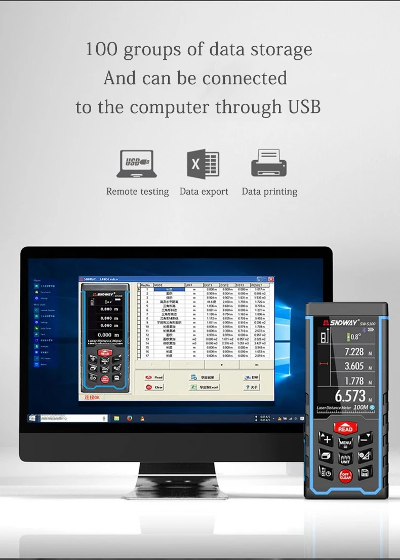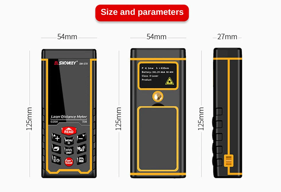 Лазерный дальномер SNDWAY50, цифровой измеритель расстояния, М, 70 ...