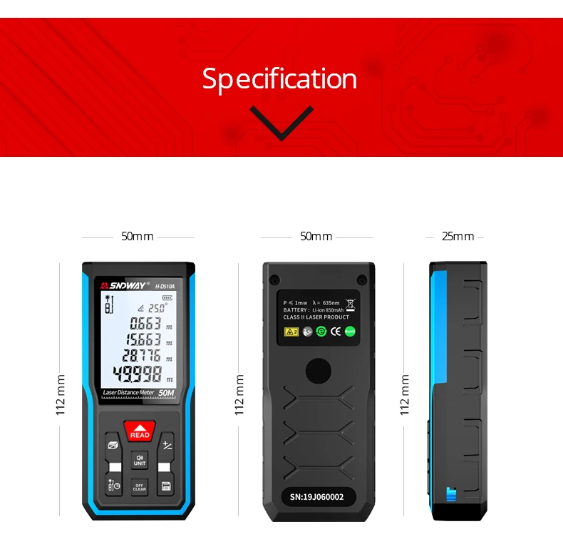 Дальномер лазерный SNDWAY, 1201007050 м, для электронной рулетки