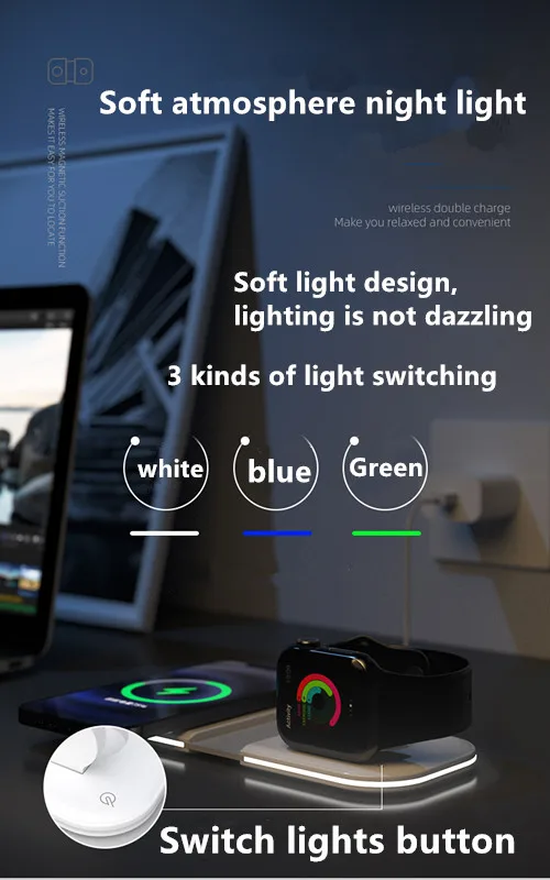 Максимальная мощность зарядки мобильный телефон 15 Вт, с функцией ночной Светильник