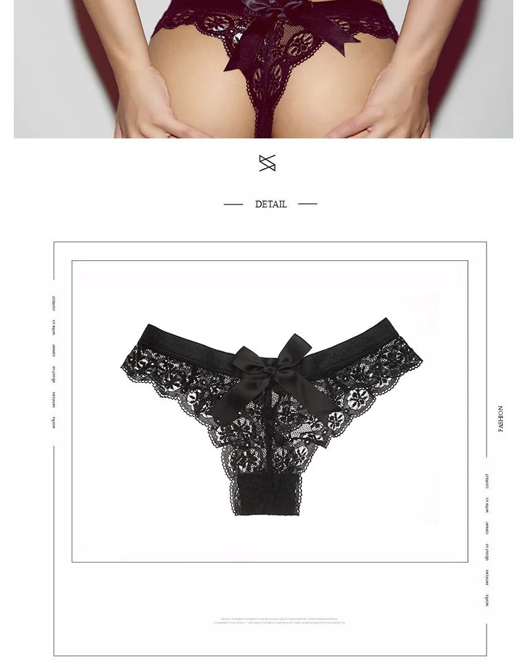 Кружевные вышитые сексуальные трусики с бантом женское нижнее белье...