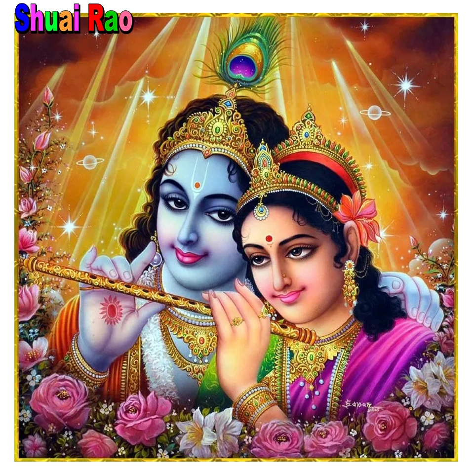 Алмазная картина сделай сам с индуистом Радха Кришной, мозаика с полным заполнением, религиозный индийский семейный подарок ручной работы, домашний декор