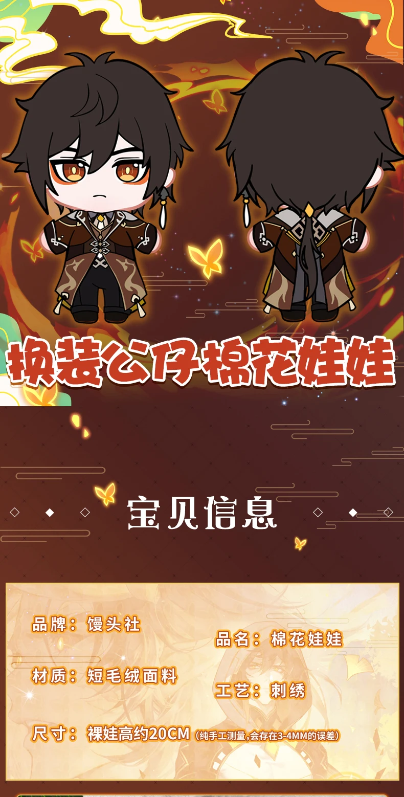 Плюшевая кукла Genshin Impact Zhong Li Zhongli, 20 см, одежда для игрушек