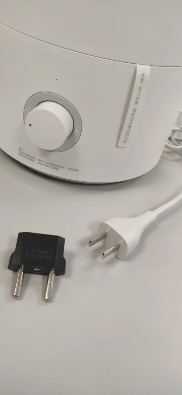 Увлажнитель работает , в комплекте имеется чёрный переходник для вилки.