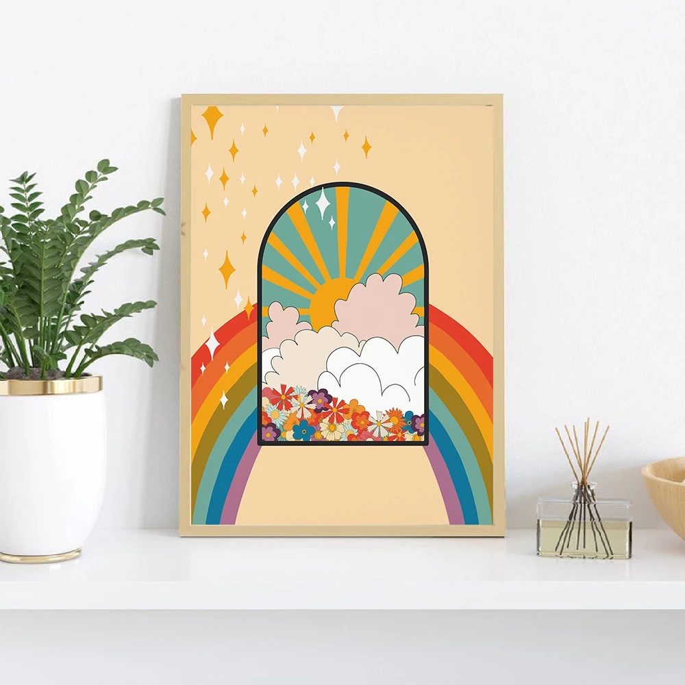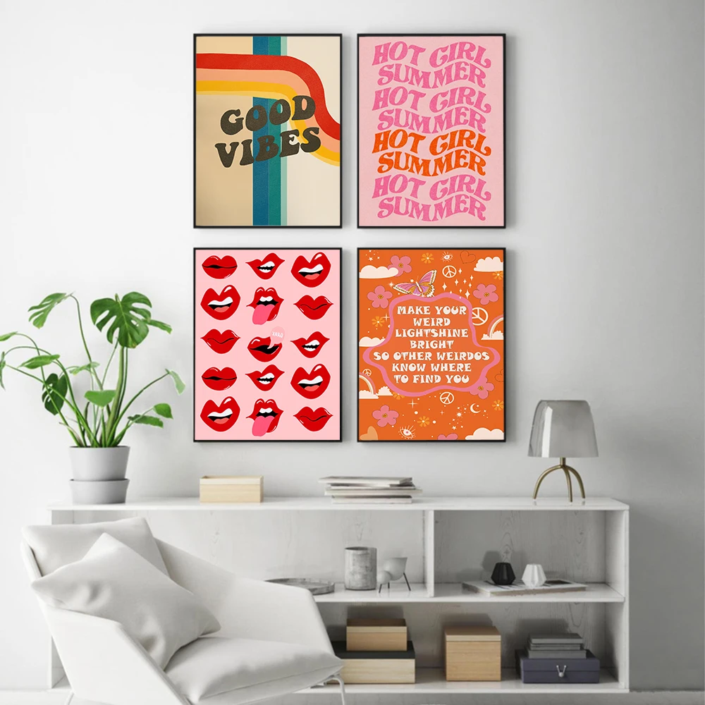 Ретро плакат 70s с радужными цветами и принтом горячей девушки красные губы Художественная Картина на холсте Феминистская Настенная картина для гостиной домашний декор