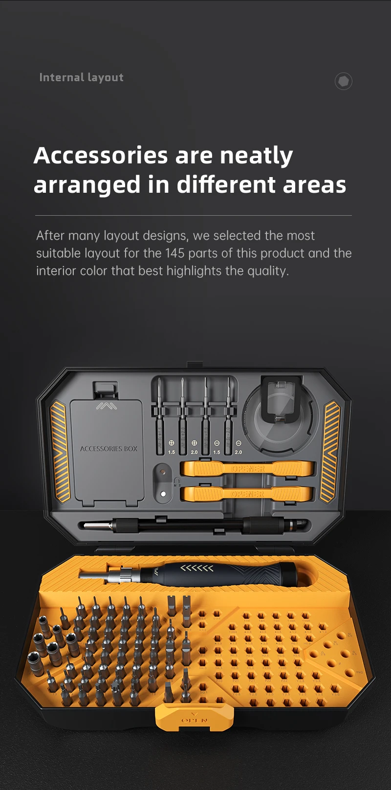 Характеристика:-- Бренд: JAKEMY-- Модель: JM-8183 Набор отверток 145 в 1-- Материал бит: CR-V Материал-Особенности: магнитный, нескользящий, точный, вращающийся колпачок отвертки-- Применение: смартфон/планшет/дисплей/камера/ноутбук/компьютерБитовая Модель:S2 45 мм отвертка с глубоким отверстием:С плоской головкой: 1,5/2,0Phillips: 1,5/2,0CR-V розетки:M2.5 * 2/3.0/3.5/4.0/4.5/5.0/5.5/G3.8/G4.2/PH2/UCR-V биты:Шестигранная розетка: H0.7/H0.9/H1.3/H1.5/H2.0/H2.5/H3.0/H3.5/H4.0/H4.5/H5.0/H6.0Phillips: 1,0*2/1.5*3/2.0*2/2.5*2/3.0*3/3.5*2/JIS000/JIS00/JIS0/JIS1Торкс: T1 * 3/T2 * 3/T3 * 2/T4 * 2/T5/T6/T7/T8/T9/T10/T15/T20Плоская головка: 1,0*2/1.3*2/1.5*2/2.0*2/2.5*2/3.0*2/3.5*2/4.0*2Безопасность Torx: T6H/T7H/T8H/T9H/T10H/T15H/T20HТип риса: PZ00 * 2/PZ0 * 2/PZ1 * 2/PZ2 * 2Три крыла: Y0.8 * 3/Y2.0 * 2/Y2.5 * 2/Y3.0 * 2Пентагон: 0,8*3/1.2*3/1.5*3/2.0*2U-образный: U2.0 * 2/U2.6 * 2/U3.0 * 2Треугольники: Δ2.0/Δ2.3/Δ2.6/Δ3.0Площадь: SQ0/SQ1/SQ2Эжектор SIM: SIM0.8/SiM1.0Противостояние: 1,5*2