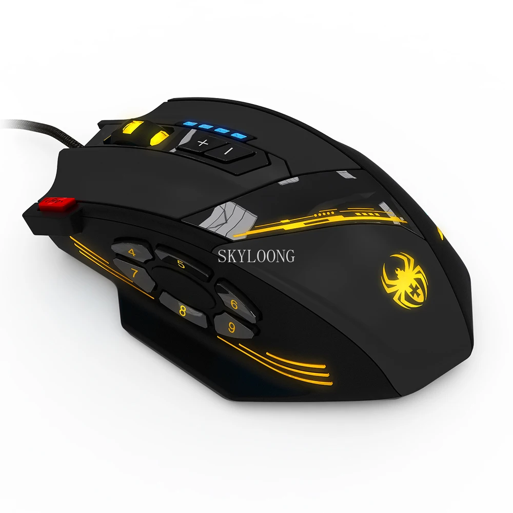 Оптическая игровая мышь ZELOTES C-12 USB, 12 программируемых кнопок, компьютерные игровые мыши, 4 регулируемых DPI, 7 светодиодов, проводная мышь