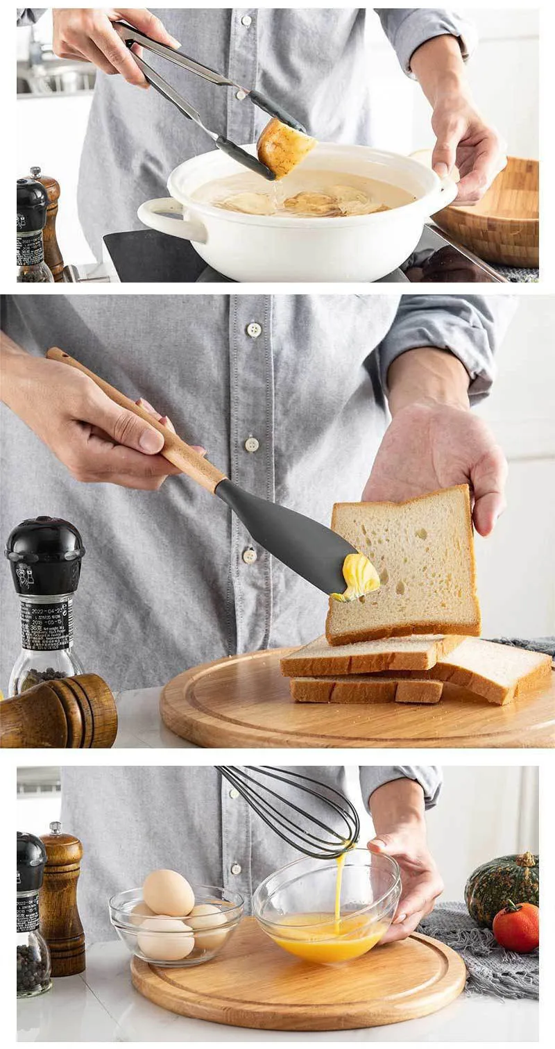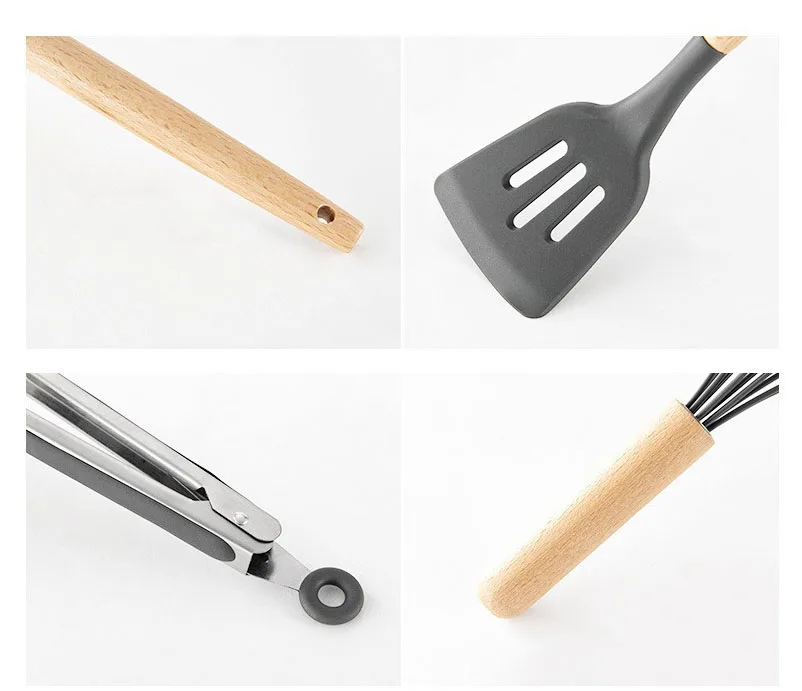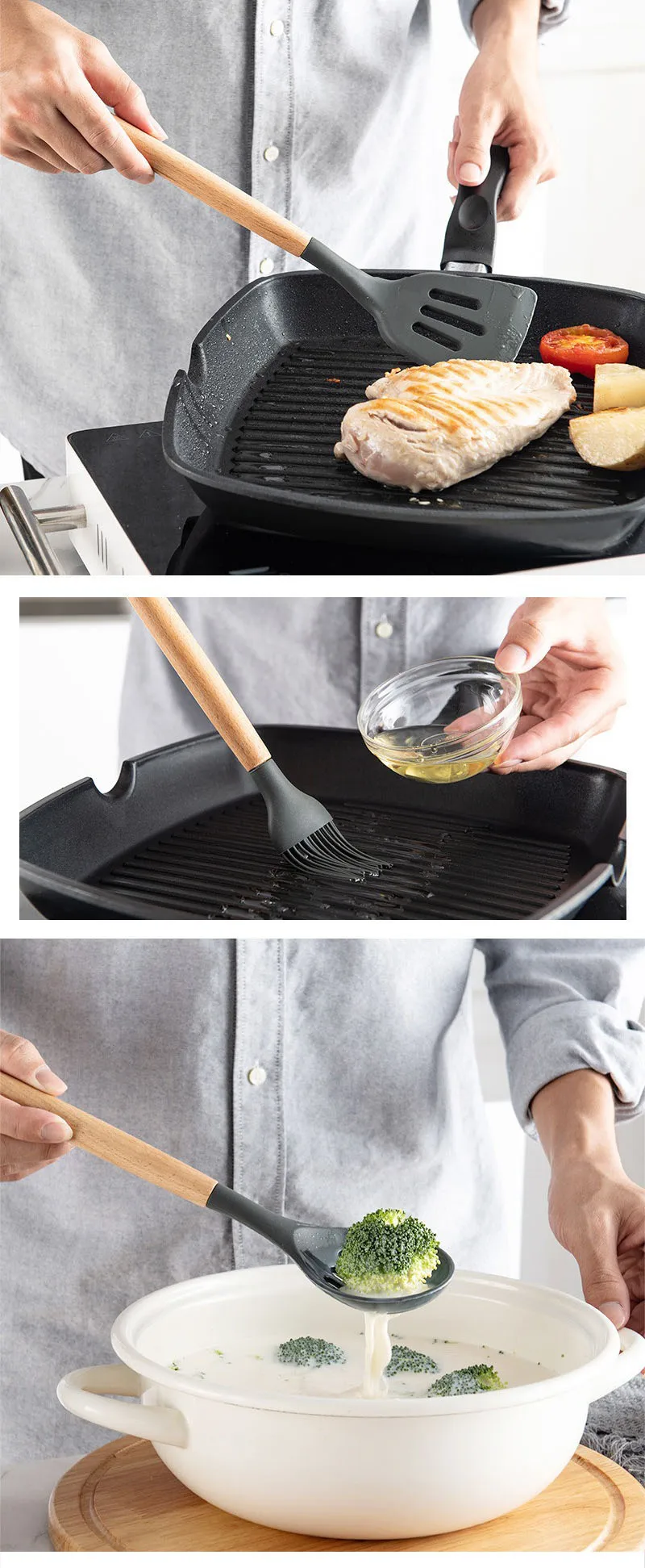 Деревянная силиконовая кухонная утварь, антипригарная кухонная утва...