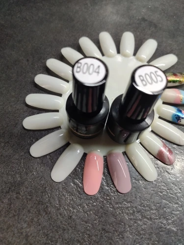 Лаки в Кривой Рог шли чуть больше месяца. На фото видно что баночки заполнены меньше чем на половину . Выкраска в два слоя. Ложиться на типсу хорошо . Как поведет себя на руках и в носке пока не знаю. Продавца рекомендовать могу.