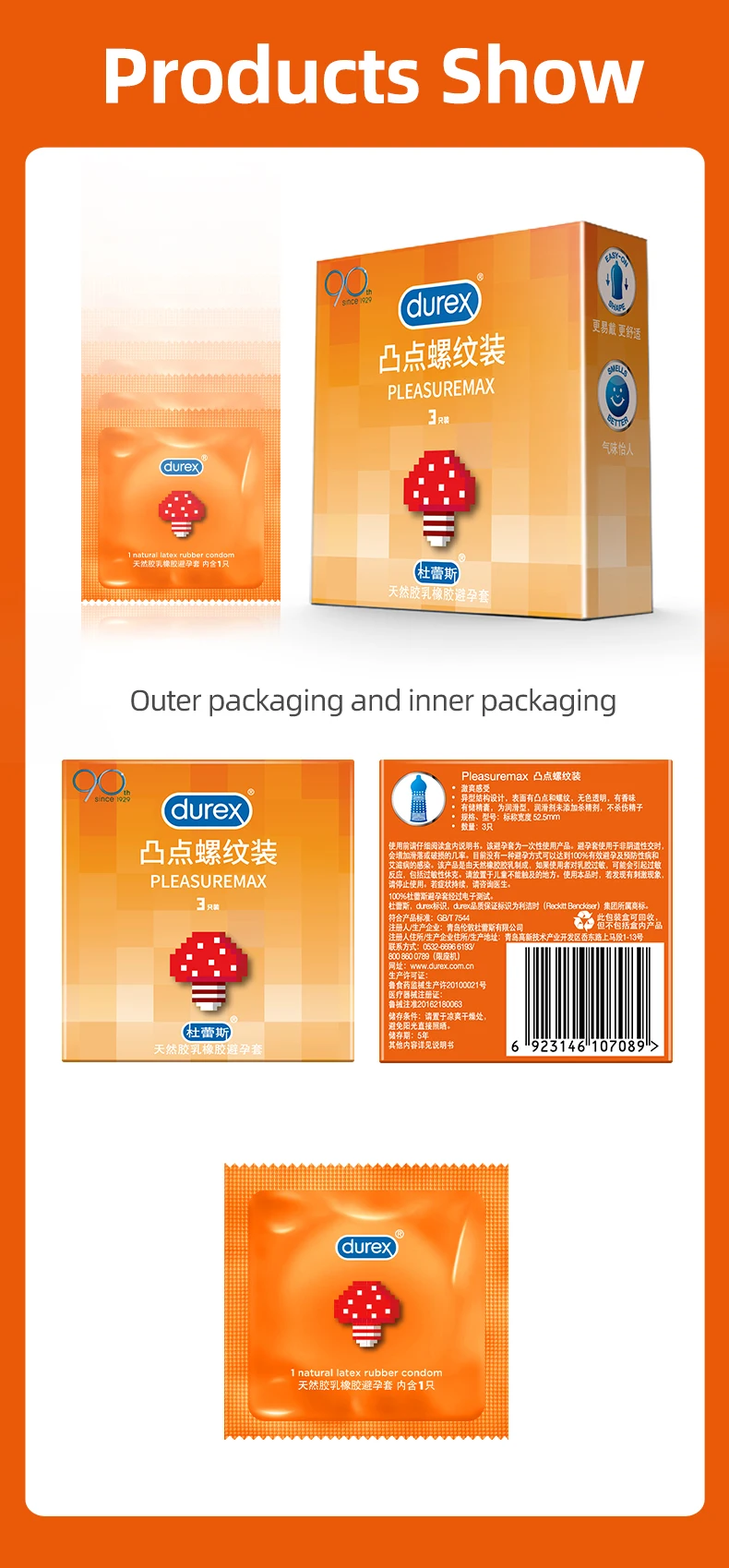 Durex презервативы 3D ледяной огонь шип ребристый точечный согревающий латексный рукав для пениса взрослые интимные товары резиновый презерватив интимные товарыДайте ей больше стимуляции: двойная стимуляция ударов и ниток, двойное трение и супер удовольствие, так что каждый раз это принесет всестороннее удовлетворениеДоставьте ему больше удовольствия: уникальный и стильный дизайн, большую посадку и легкость в носке; Инновационный дизайн с широким верхом, более удобный и захватывающий