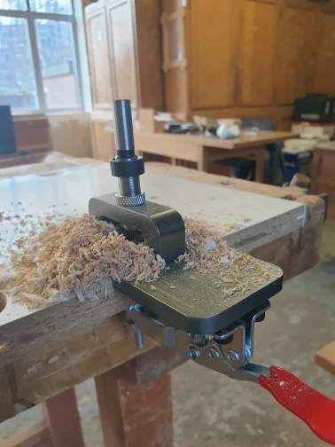 El tope de goma que fija la herramienta sobre la madera no se corresponde con el de la foto, el de la foto es de los grandes y fijan mejor, y el recibido es de los pequeños que tienen poca base de fijación. La broca es meramente de adorno, no corta absolutamente nada. La herramienta en sí, cumple su función