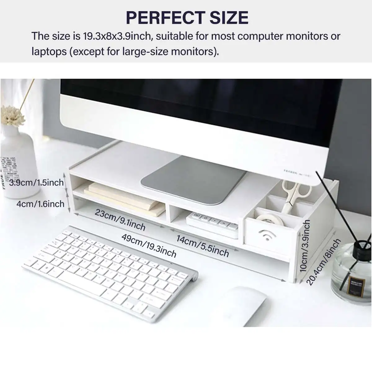 Многофункциональная подставка: помимо подъема монитора ПК, ее также можно использовать как стеллаж для хранения. Есть несколько отделений для хранения, которые удобно хранить мышь, мобильный телефон, книгу, ноутбук, ножницы, ручки и другие мелкие предметы, чтобы ваш рабочий стол оставался в чистоте и порядке.