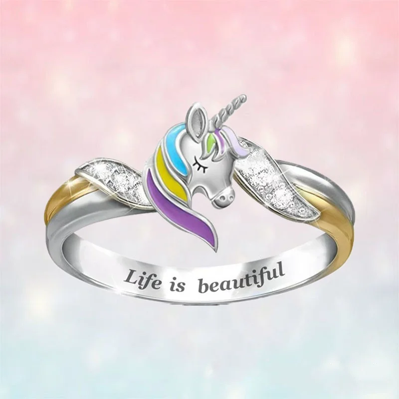 Радужное женское кольцо с единорогом, высококачественное женское ко...