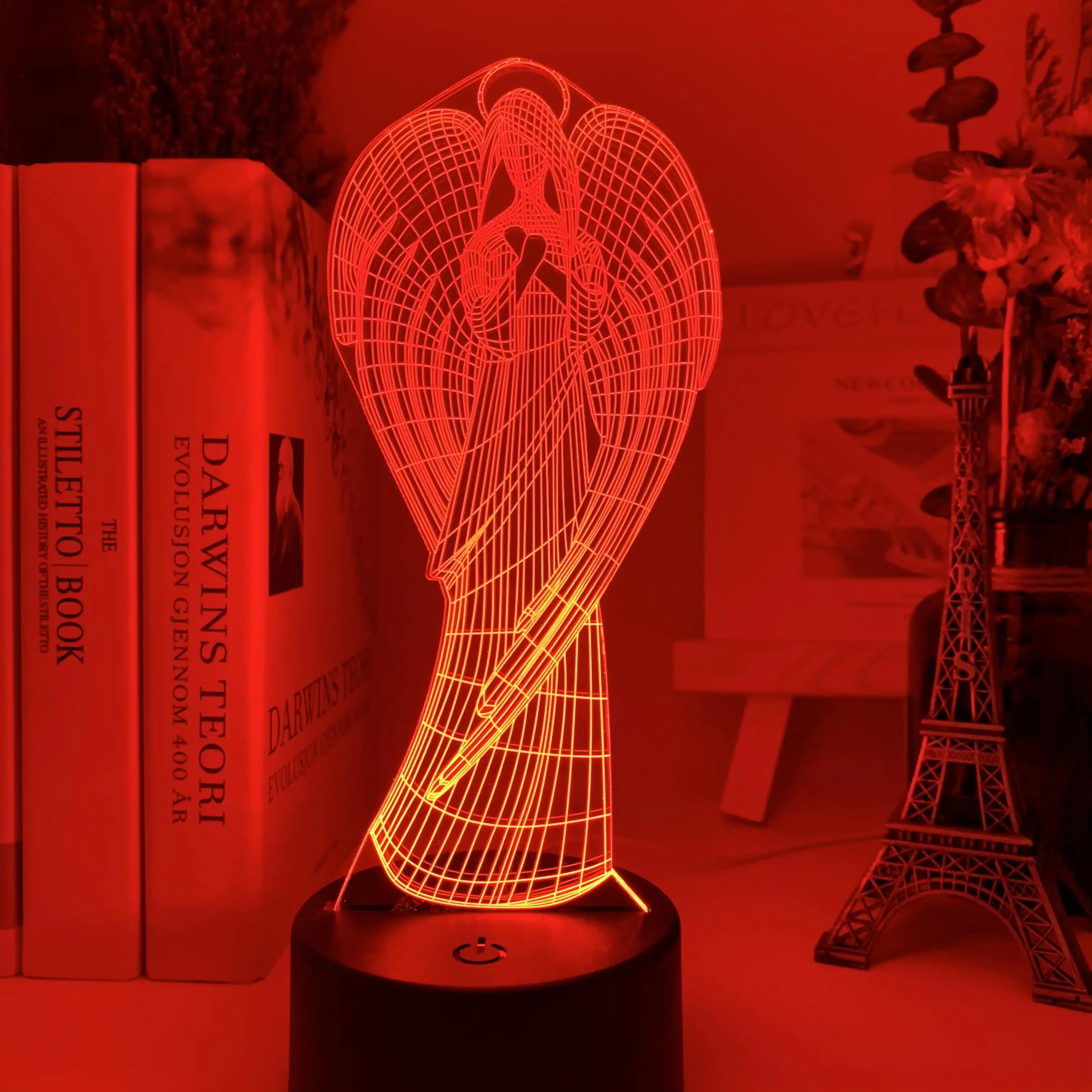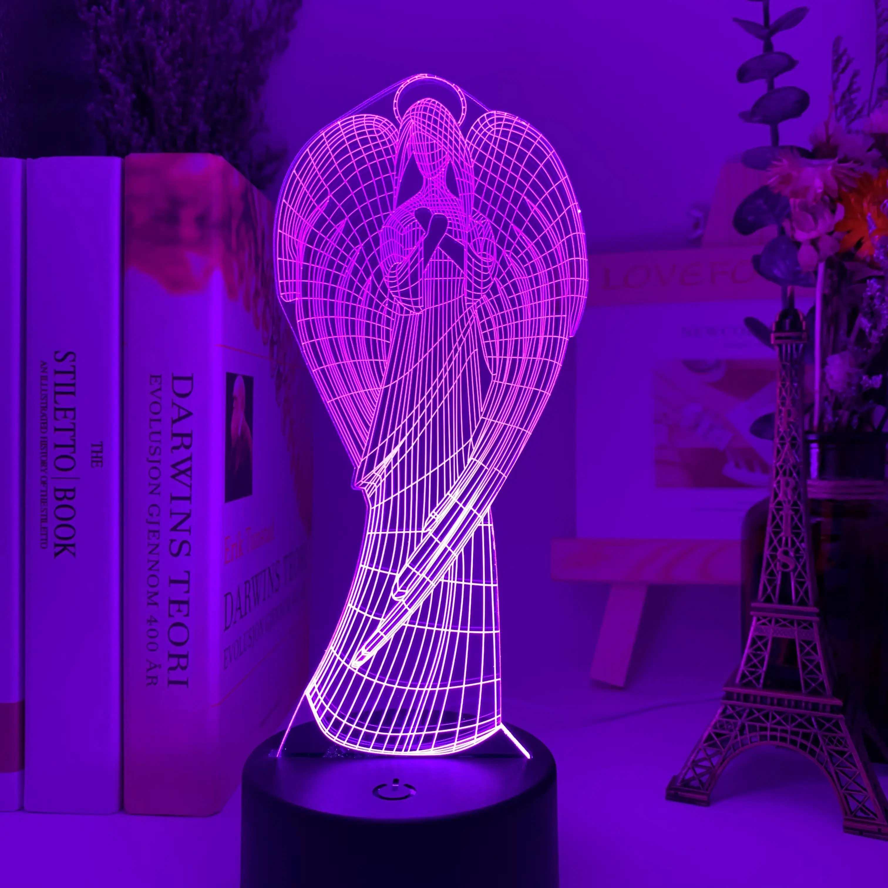Акриловый светодиодный ночник с 3D иллюзией, модель с ангелом, ночной Светильник ильник для детской комнаты, светильник освещение, настольная лампа с Usb-аккумулятором