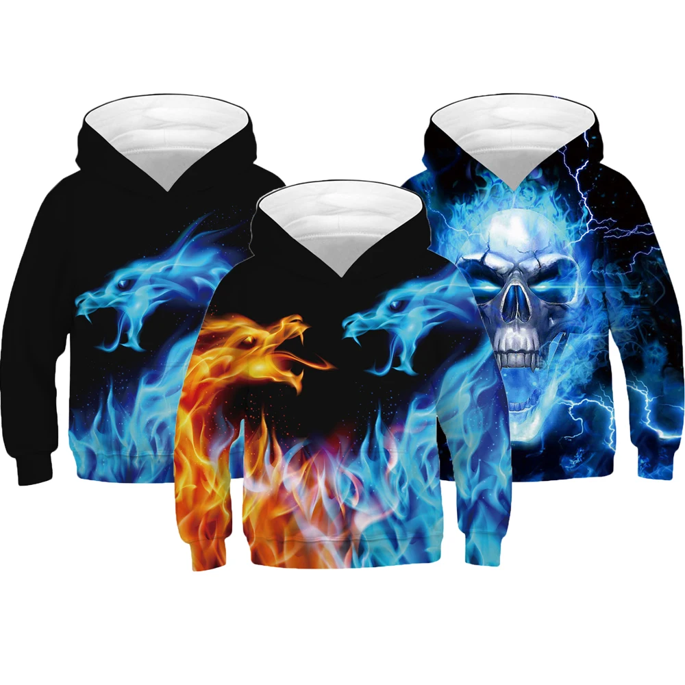 Детская толстовка с капюшоном, осеннее пальто, 3D волк, гром, Череп, огонь, толстовка с драконом, Подростковый Хэллоуин, рождественский подарок для мальчиков и девочек