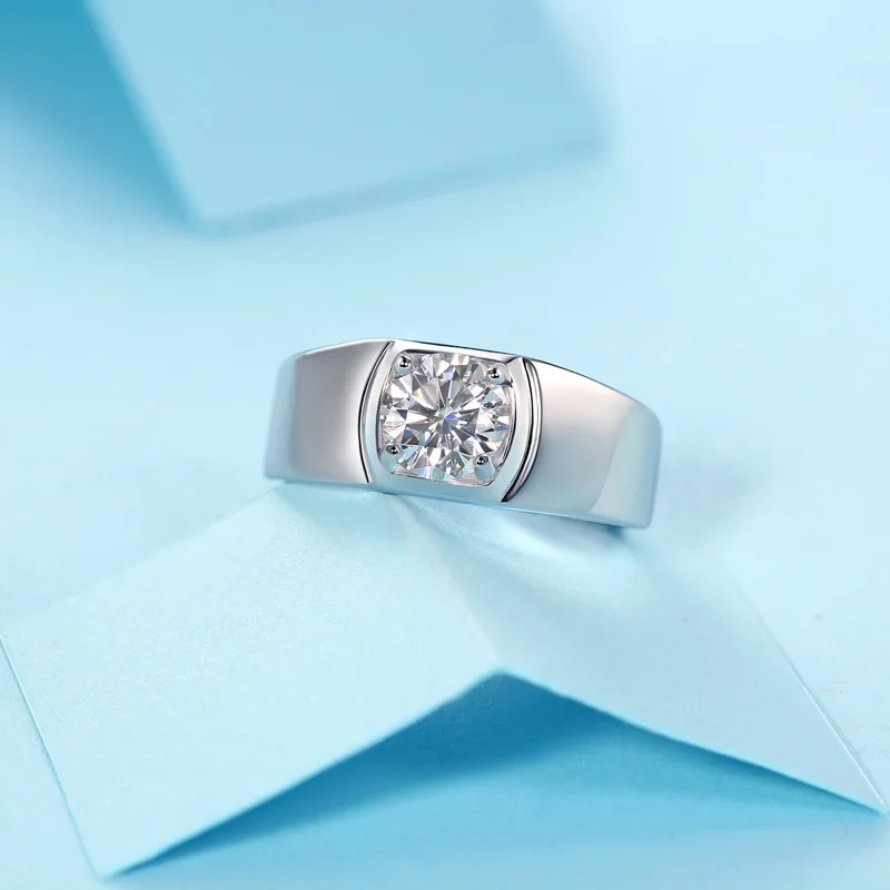 Кольца мужские из серебра 100% пробы, с мусанитом, 1 карат, 7 мм