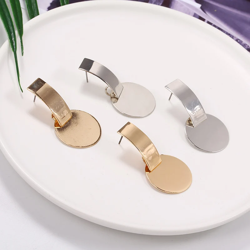 Простые круглые металлические серьги-капли для женщин золотогосереб...