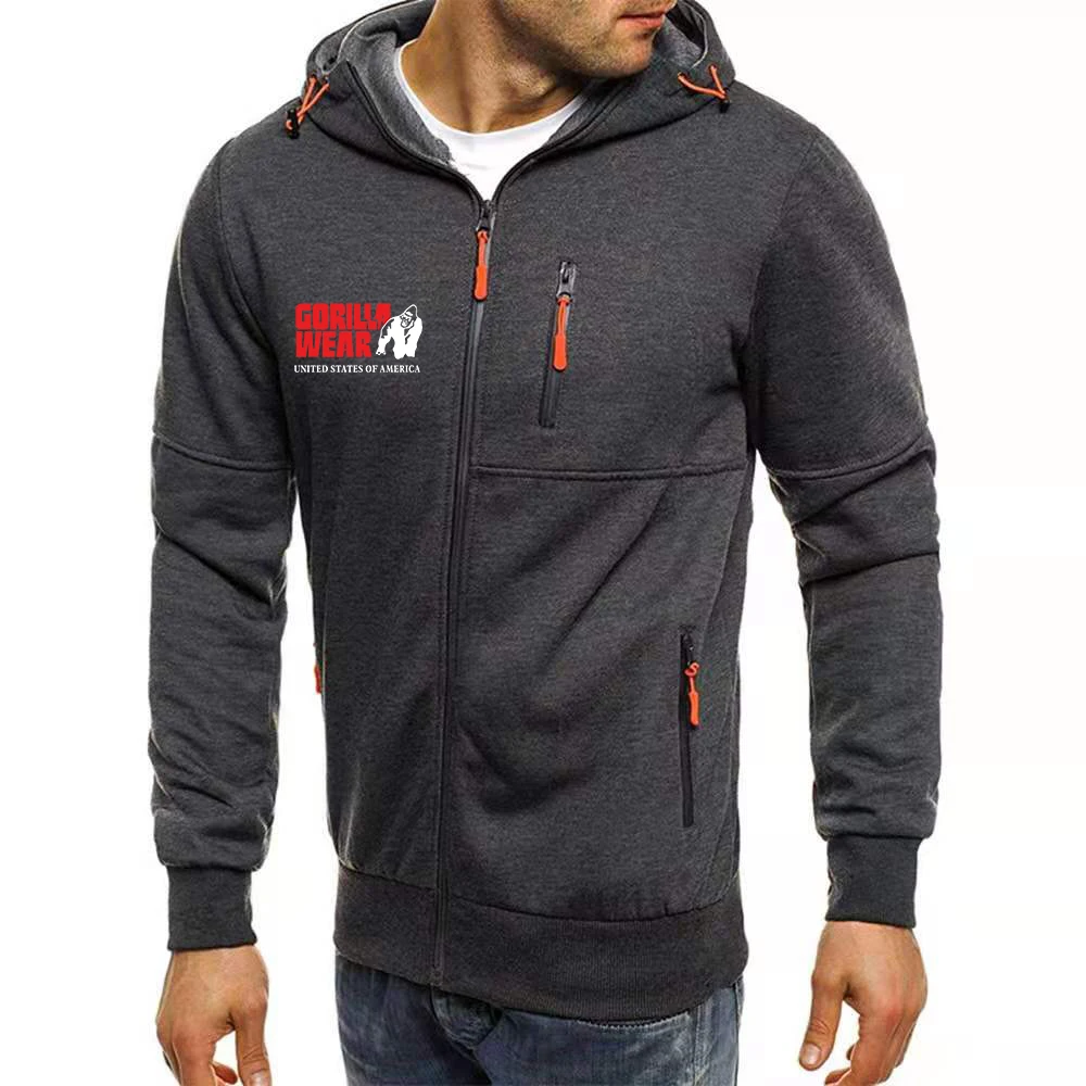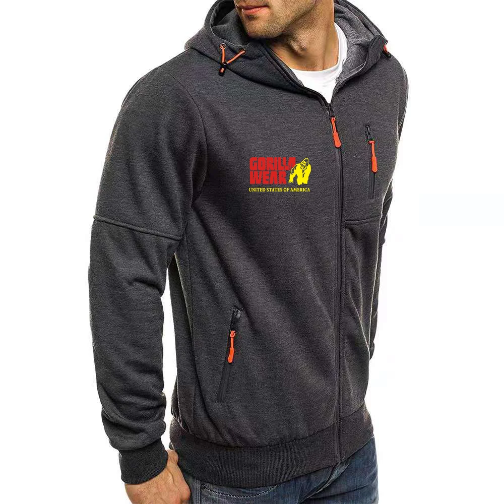 Куртка мужская с капюшоном, повседневная спортивная одежда для фитн...