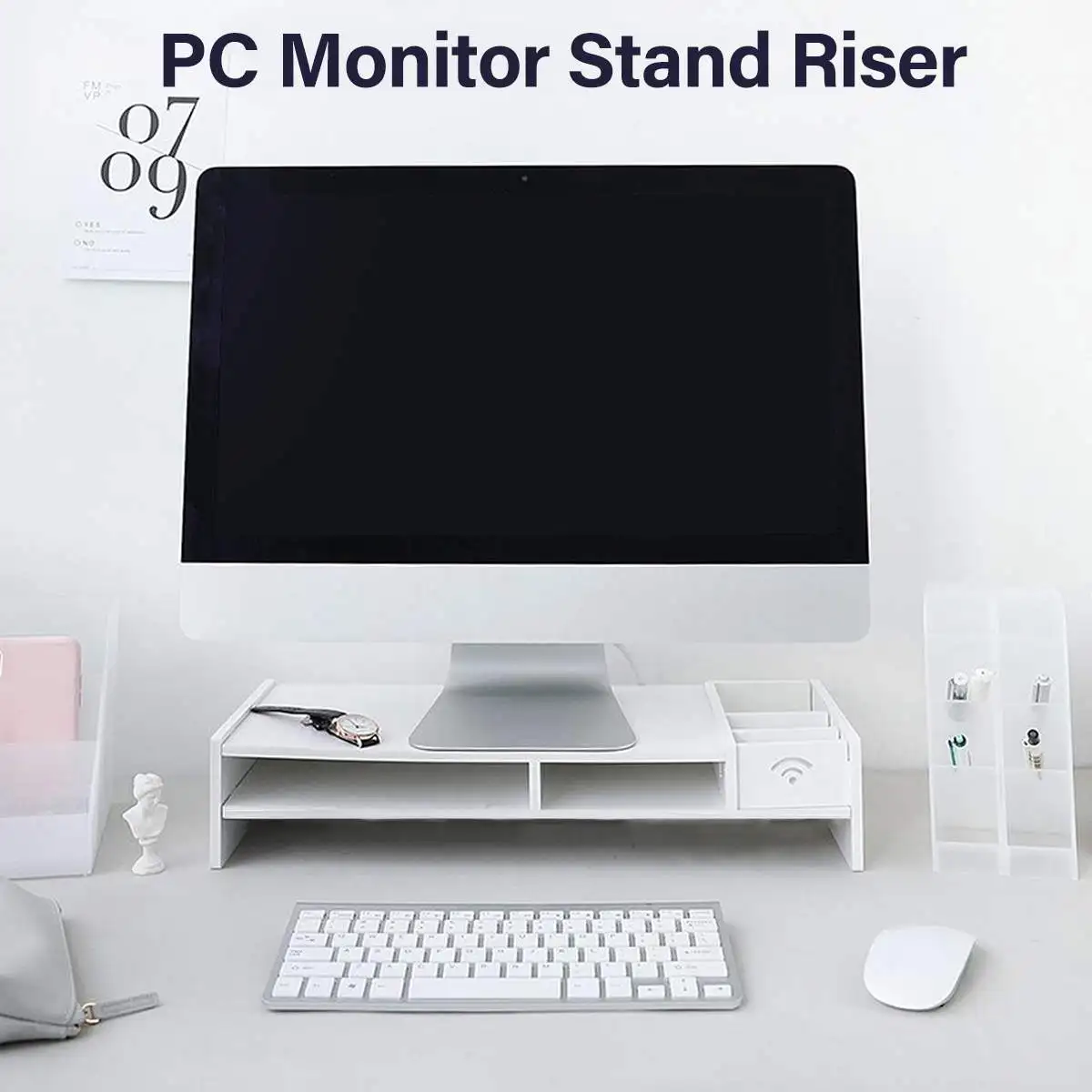 Многофункциональная подставка: в дополнение к подъему монитора ПК, она также может использоваться в качестве стойки для хранения. Есть несколько отделений для хранения, удобных для хранения мыши, мобильный телефон, книги, ноутбука, ножниц, ручек и других мелких предметов, чтобы ваш рабочий стол был чистым и аккуратным.
