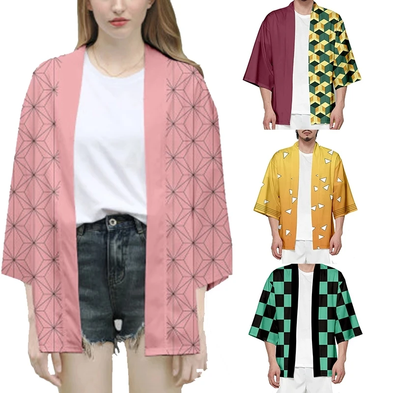 Кимоно для женщин и мужчин, японское аниме кимоно с 3D принтом, рассекающий демонов, хаори юката, летняя повседневная крутая уличная одежда для косплея
