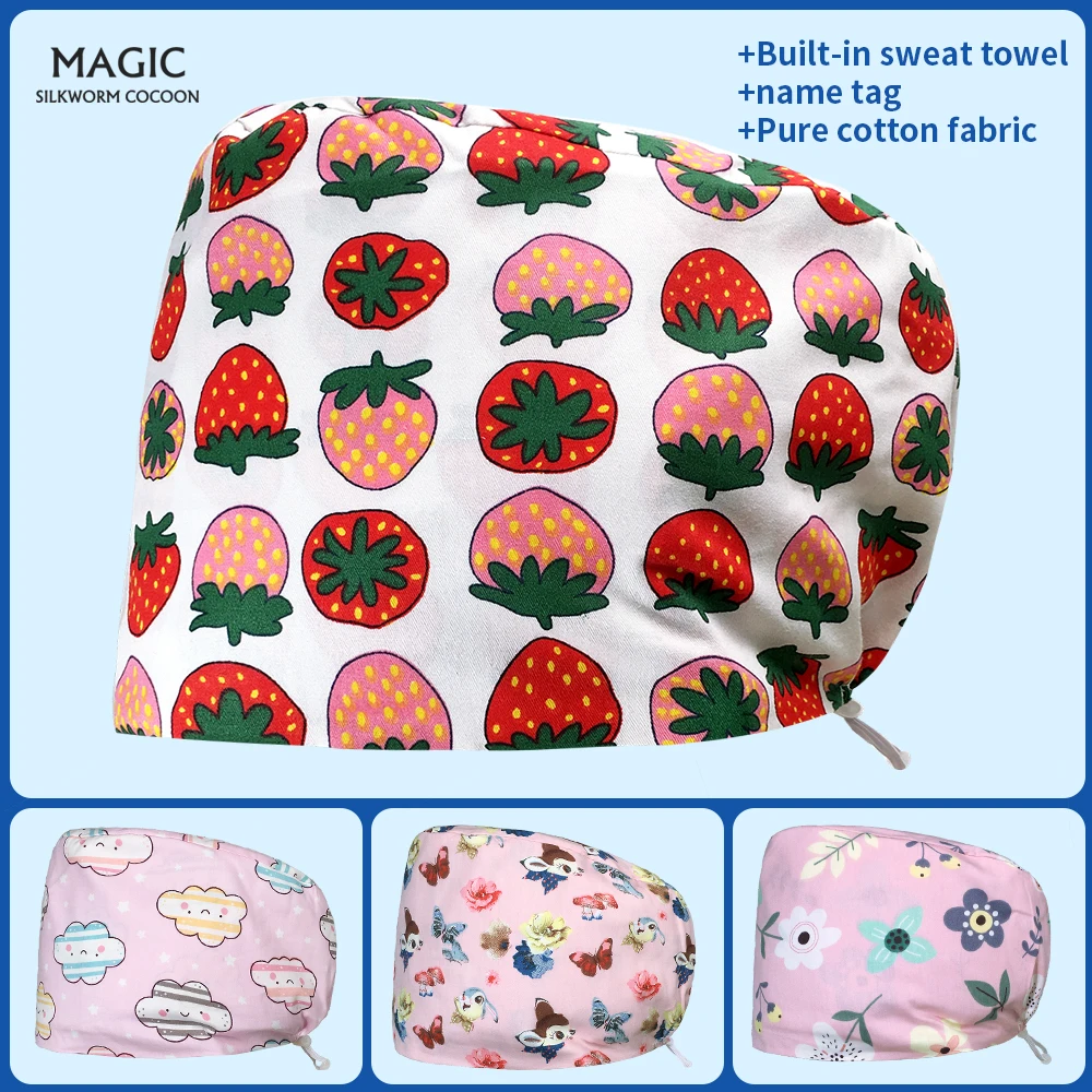 Регулируемая Кепка для медсестры, эластичная Кепка из чистого хлопка с принтом, хирургическая Кепка s, унисекс кепки для косметолога, кепка Baotou, докторская Кепка для домашних животных