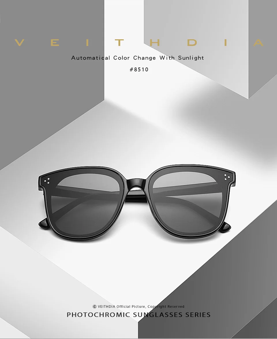 Солнцезащитные очки VEITHDIA для мужчин и женщин, брендовые Дизайнерские Модные поляризованные фотохромные линзы, Винтажные Солнцезащитные очки UV400 для мужчин и женщин S8510