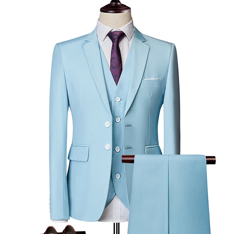 Мужской свадебный костюм, Узкий однотонный пиджак, брюки, жилет, 3 шт.