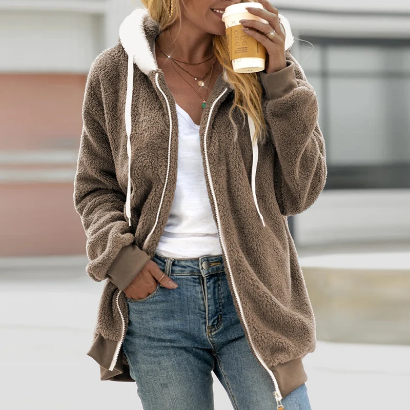 Женская зимняя куртка, повседневное пальто с капюшоном, плюшевая куртка с длинным рукавом и капюшоном для женщин 2021, женское теплое пальто