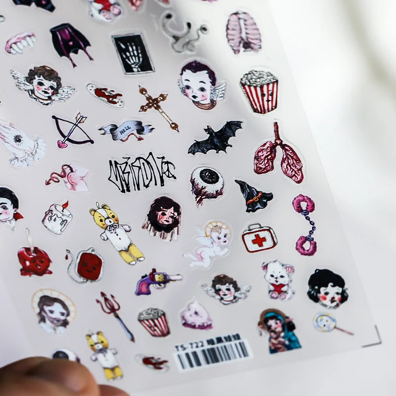 Слайдеры для ногтей в стиле Хэллоуина, 1 шт., наклейка от сглаза, медведя, легких наклейки в стиле панк, наклейки для ногтей, декоративные украшения для кукол и глаз