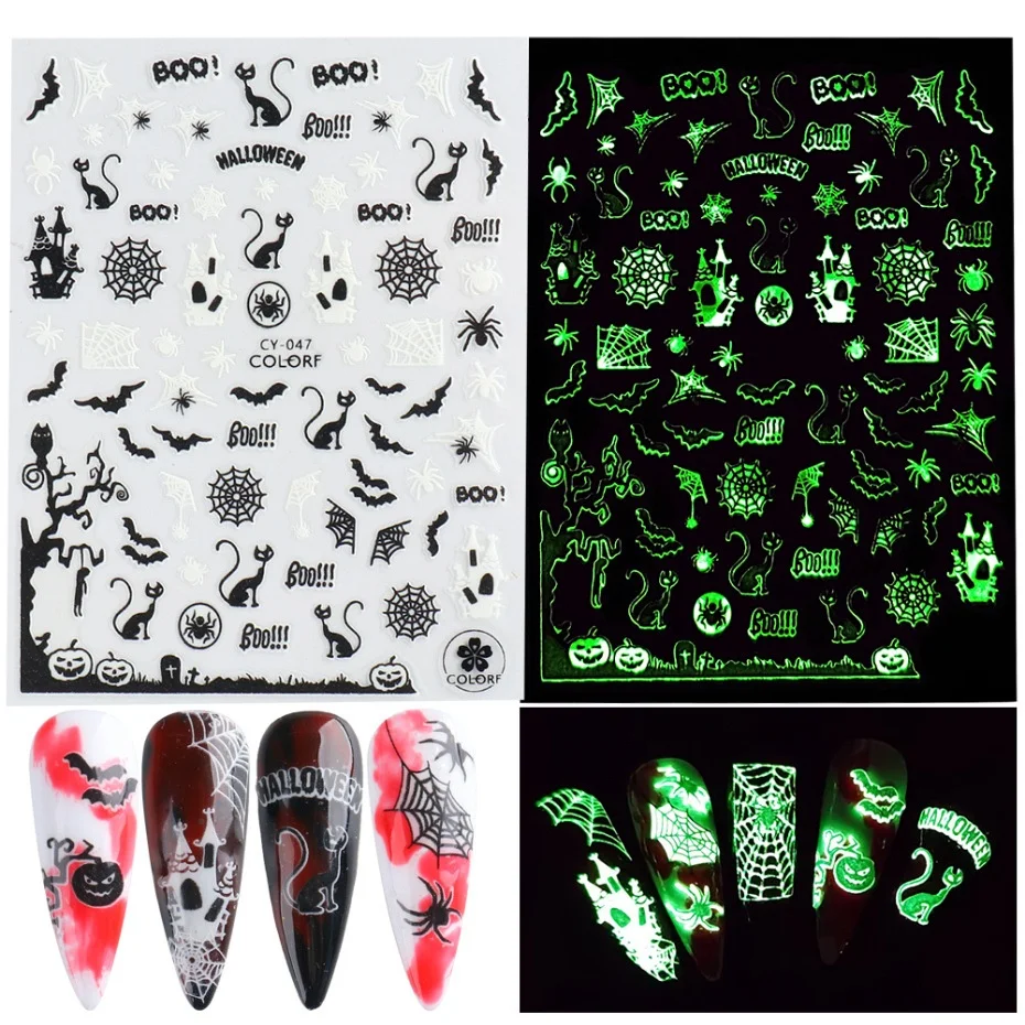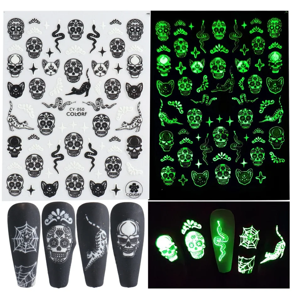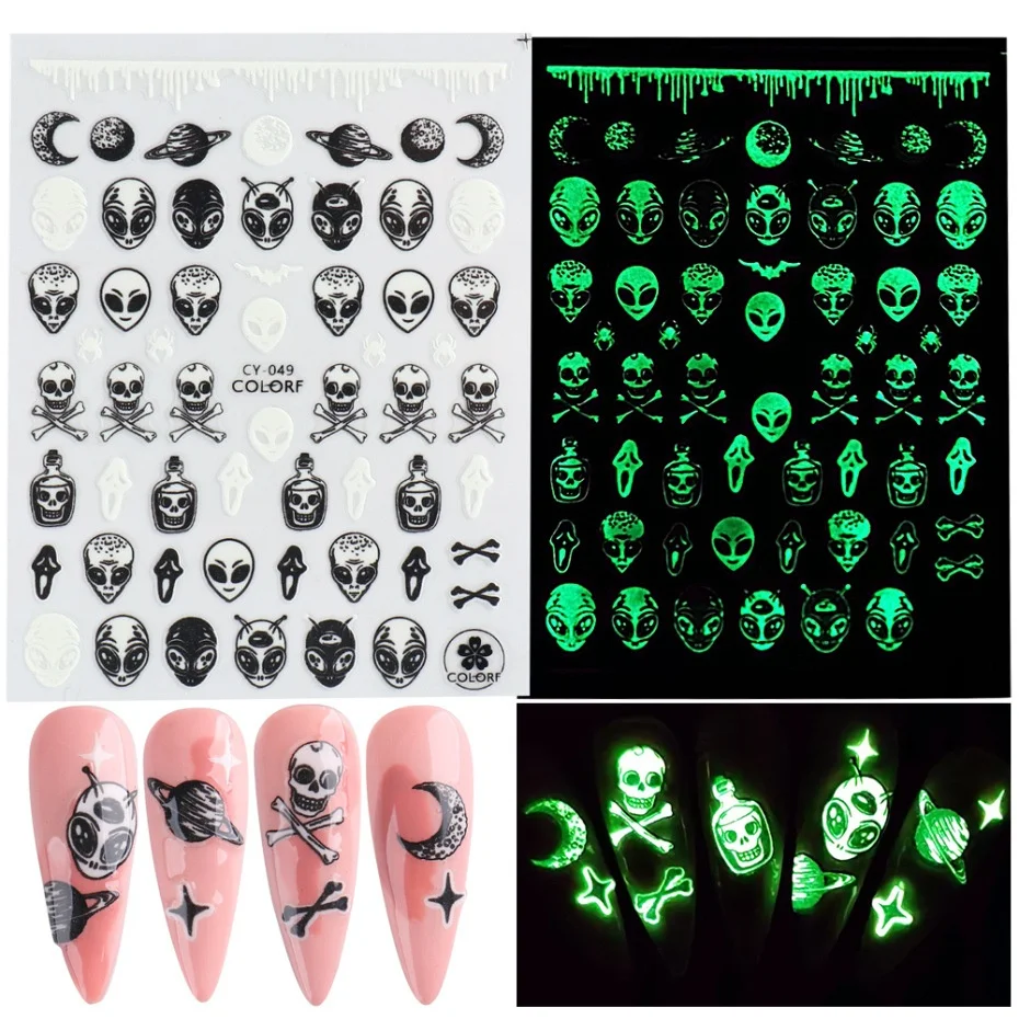 1 лист ногтей Хэллоуин светящиеся наклейки призрак, змея 2021 светятся в темноте