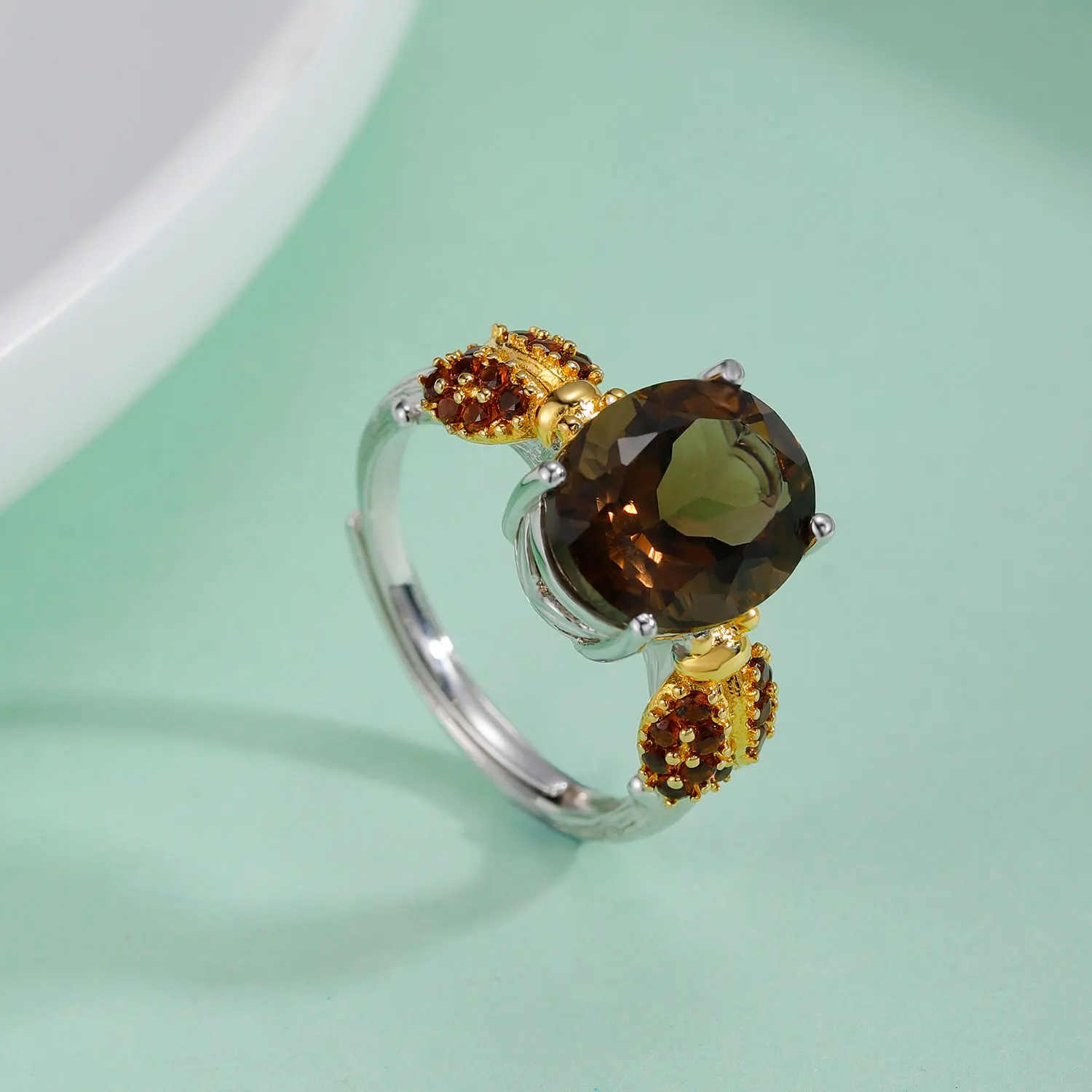 Кольцо женское из серебра 925 пробы, с натуральным дымчатым кварцем